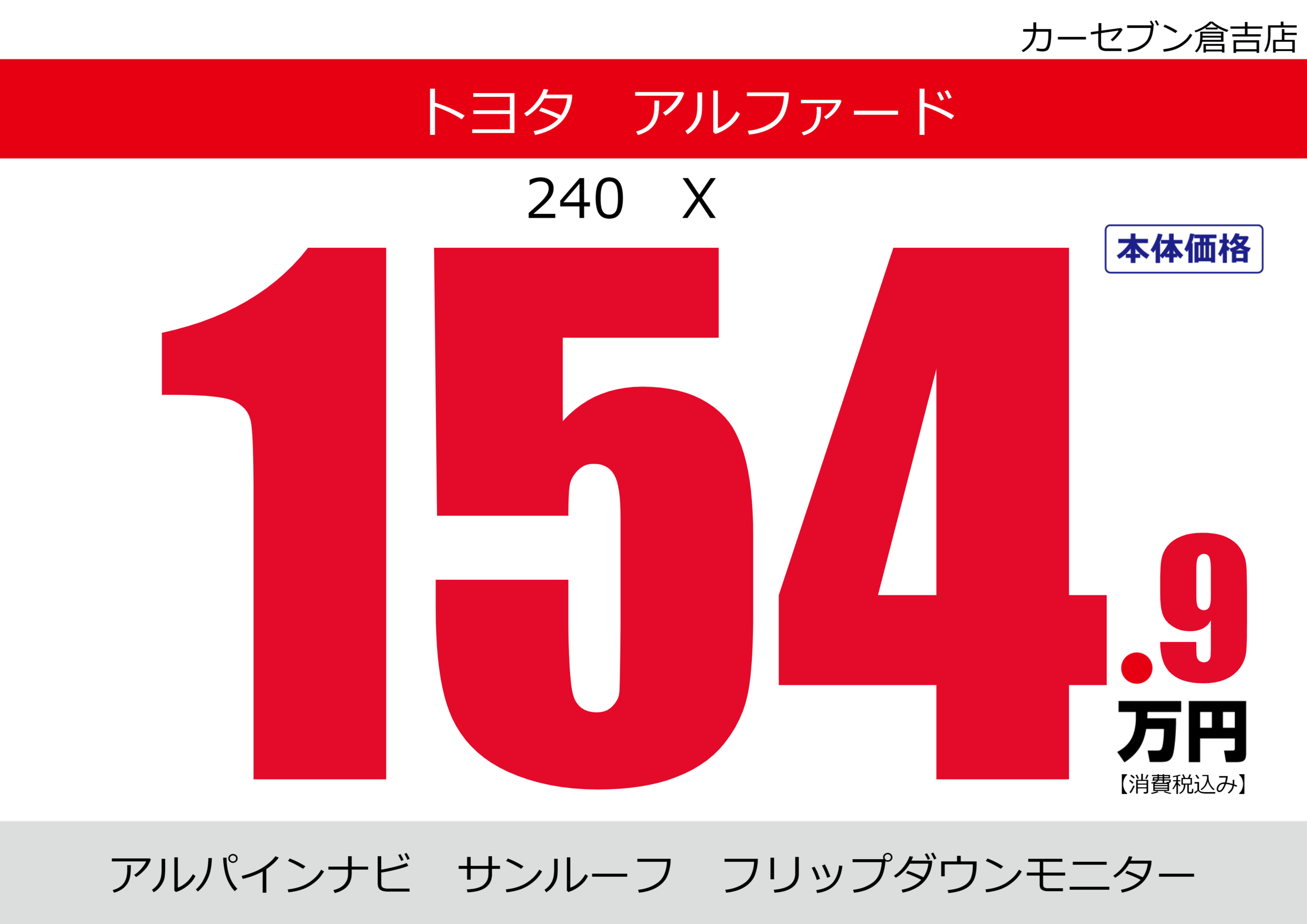 | 車名 | トヨタ アルファード | グレード ミッション 排気量 |