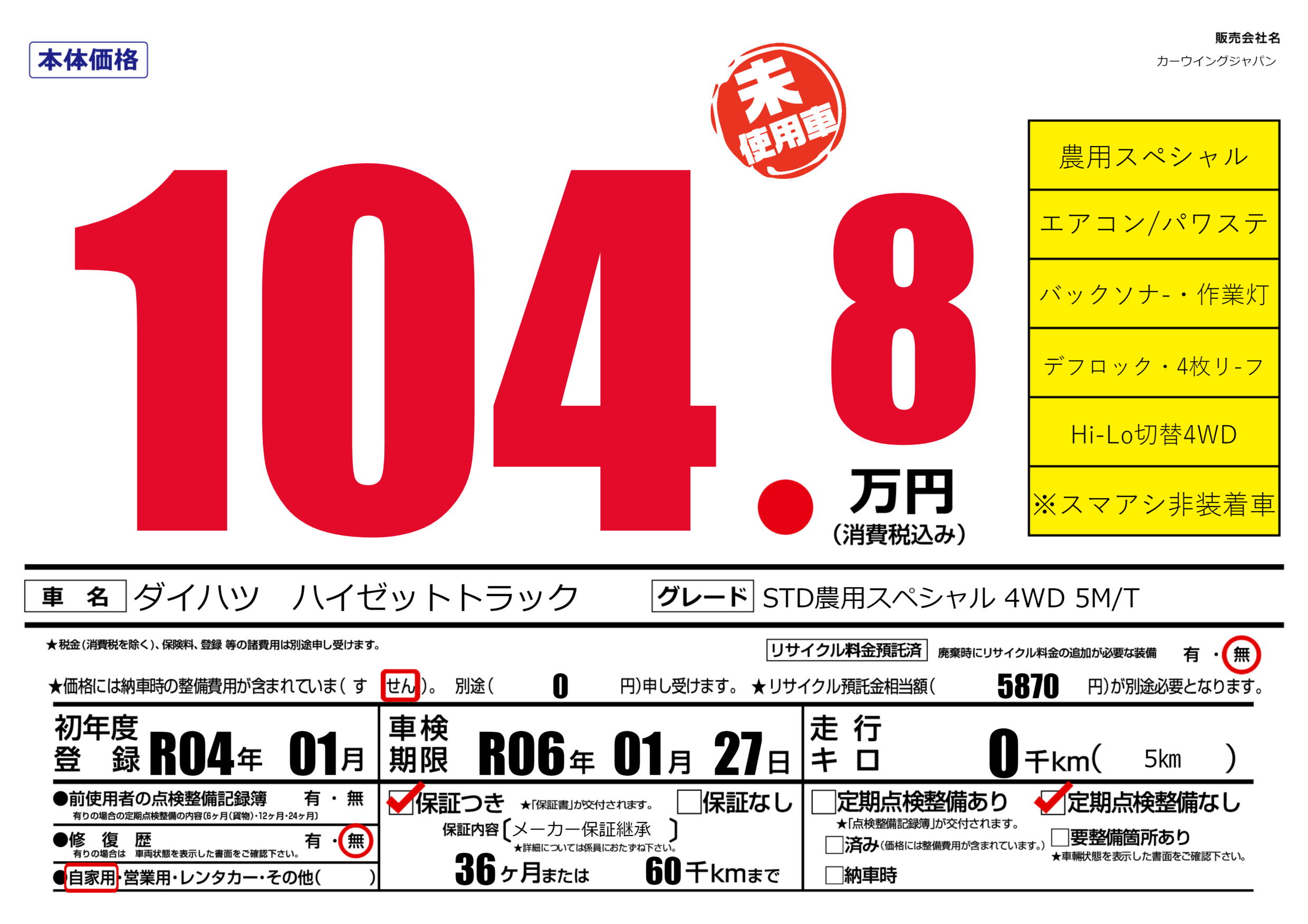 | 車検制限 | R06年 01月 27日 | ||