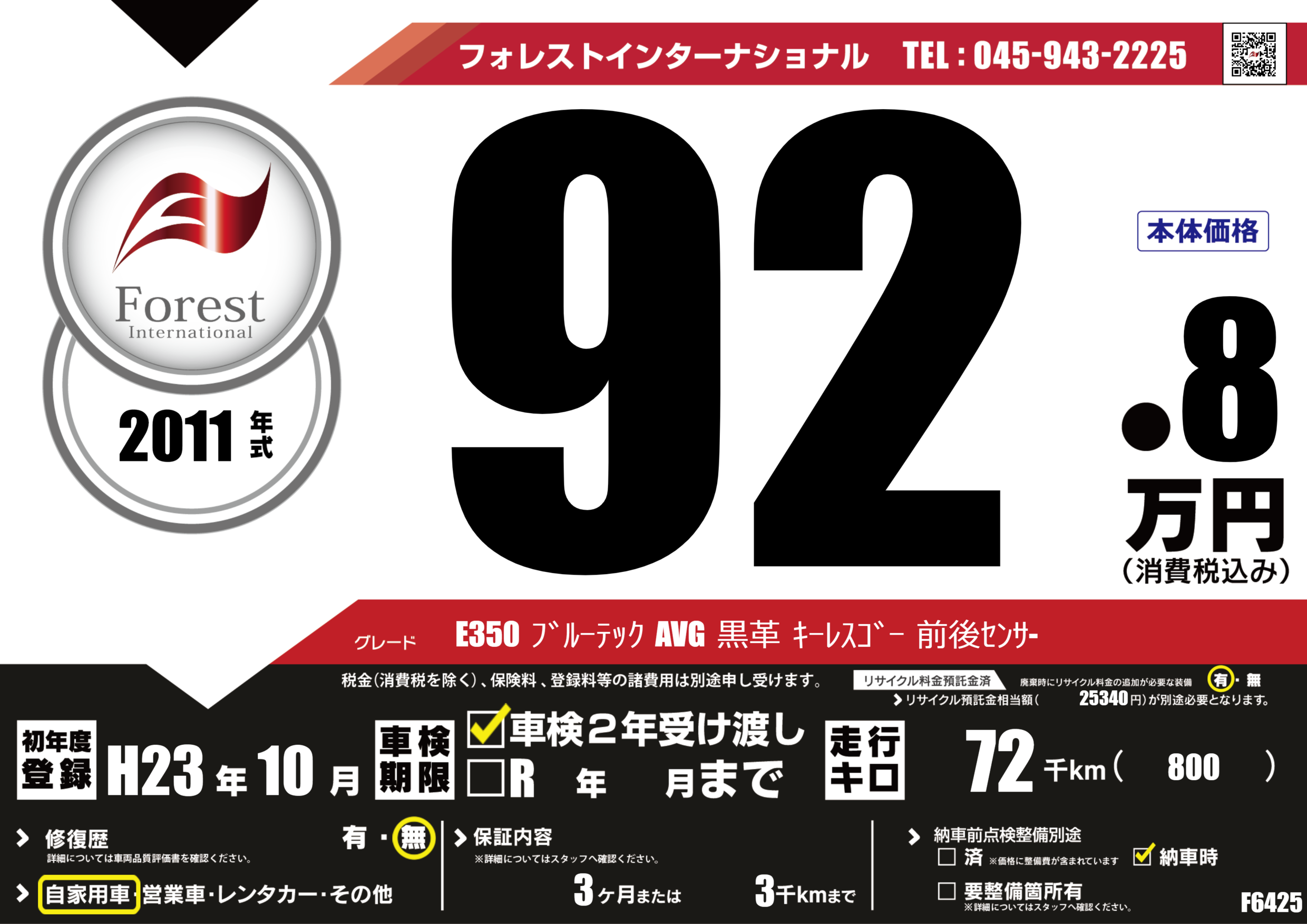 | 走行キロ | 7.2万km | 初年度登録 | H23年10月 |