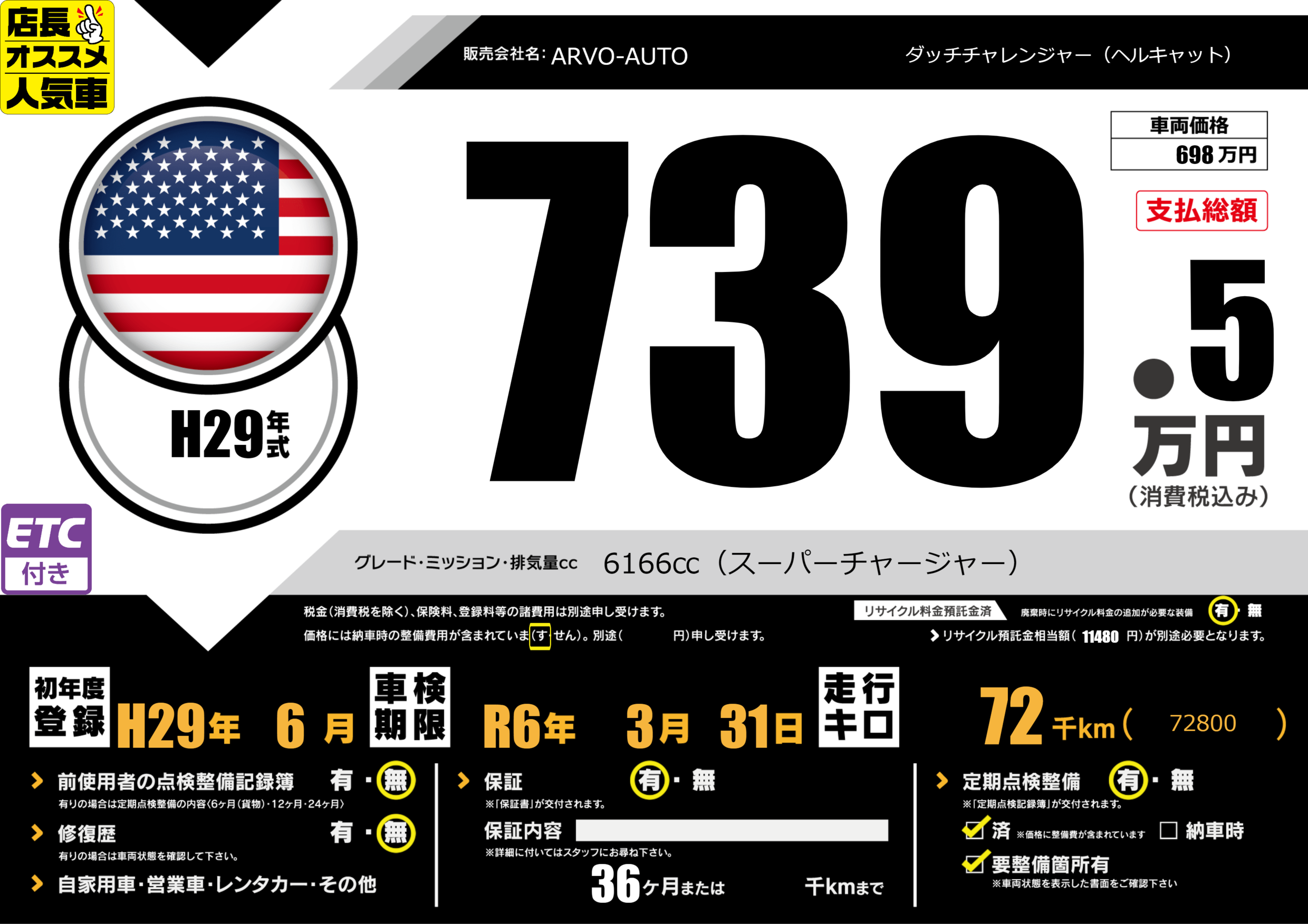 | 車名 | ダッチチャレンジャー(ヘルキャット) | グレード ミッション 排気量 |
