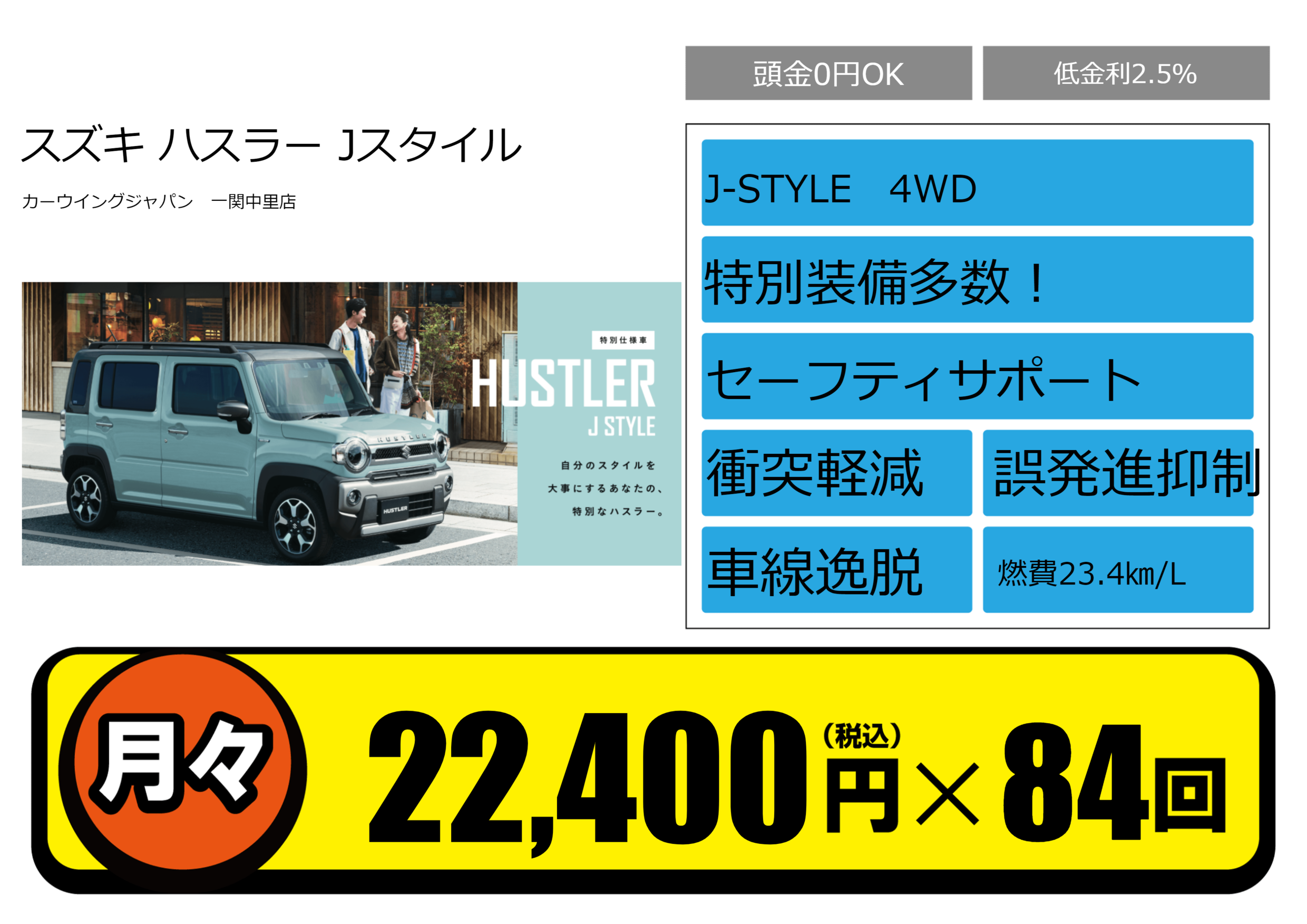 | 車名 | スズキ ハスラー Jスタイル | グレード ミッション 排気量 |