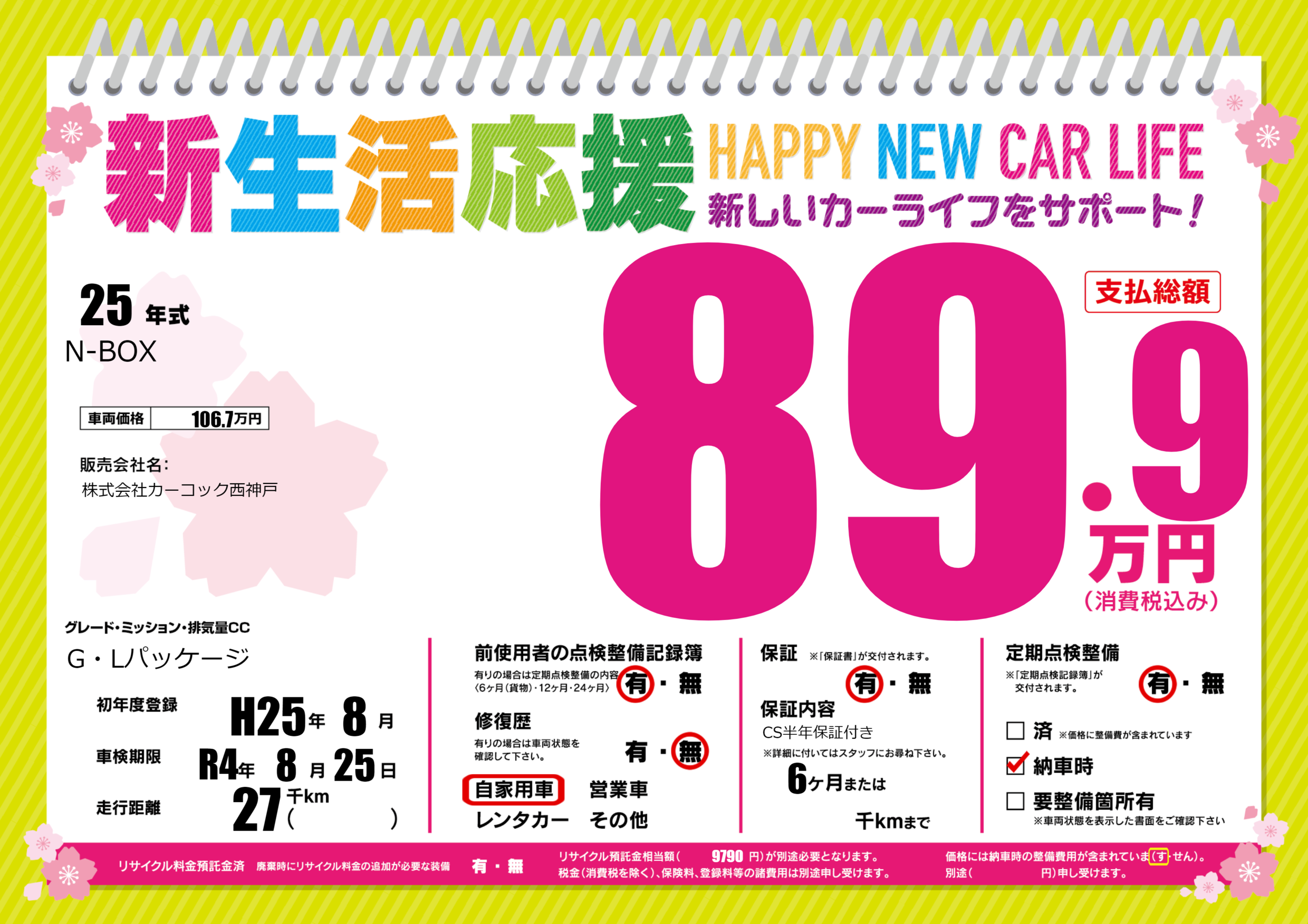 | 定期点検整備 | 定期点検整備あり 納車時あり | ||