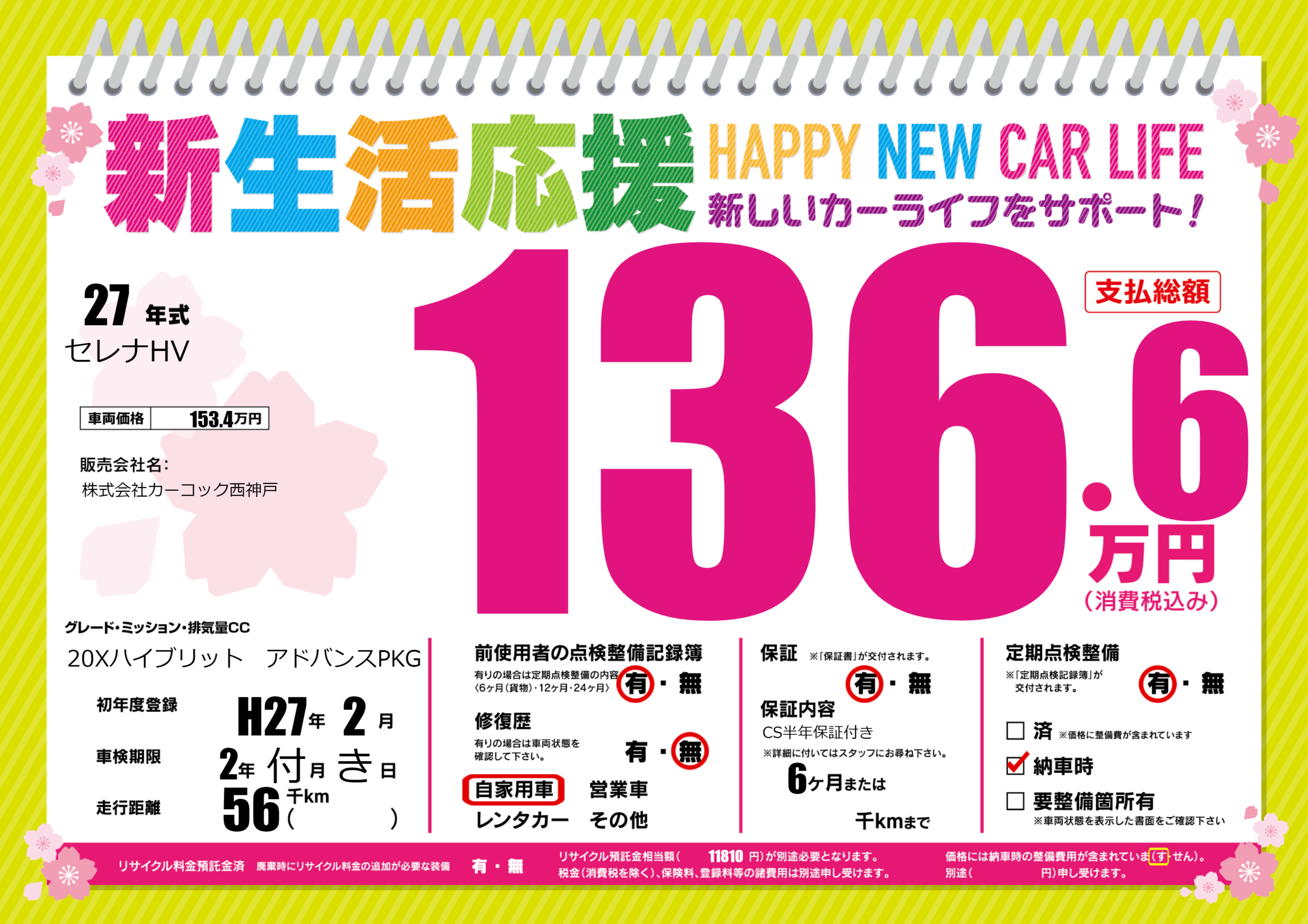 | 車名 | セレナHV | グレード ミッション 排気量 |