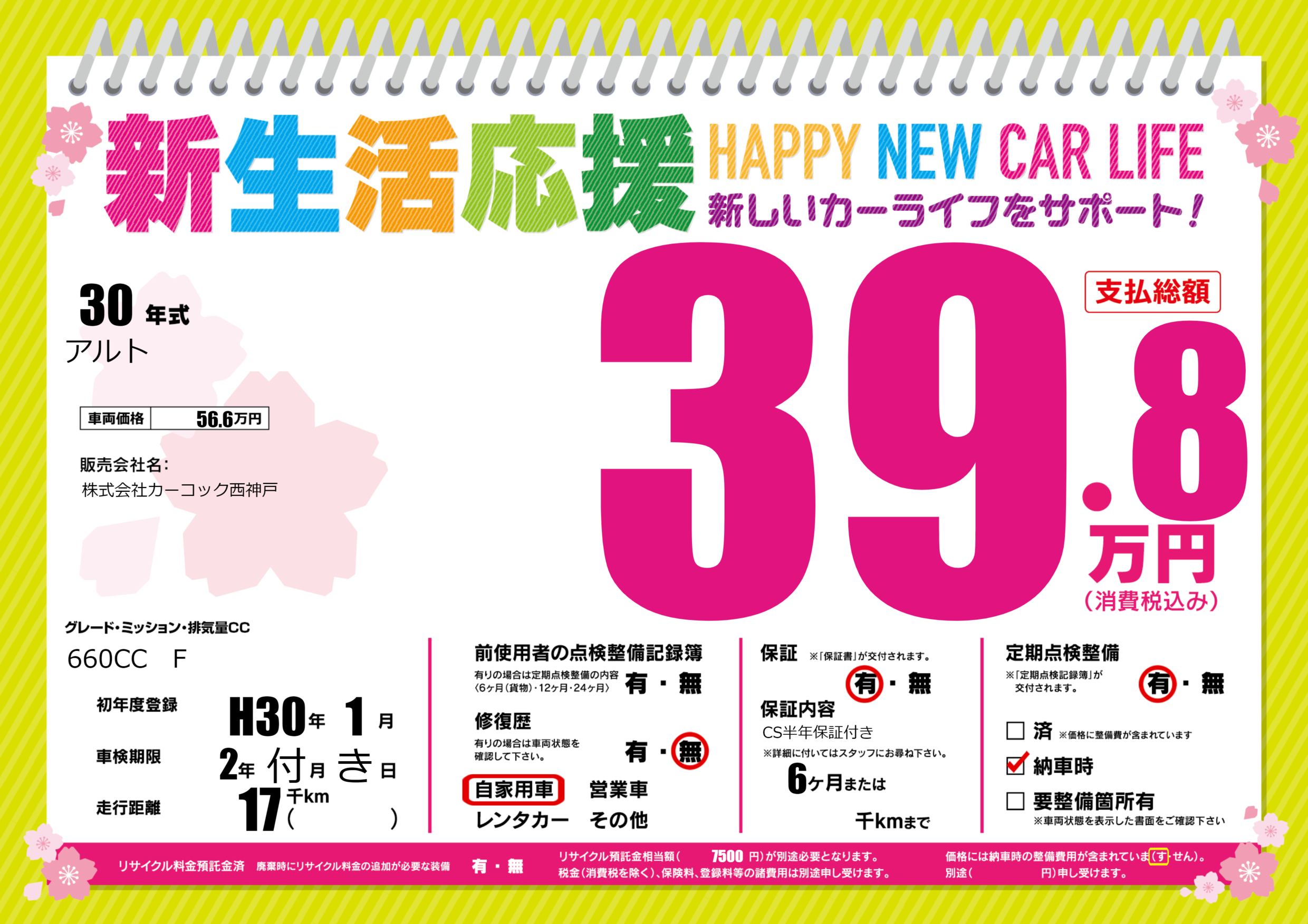 | 定期点検整備 | 定期点検整備あり 納車時あり | ||