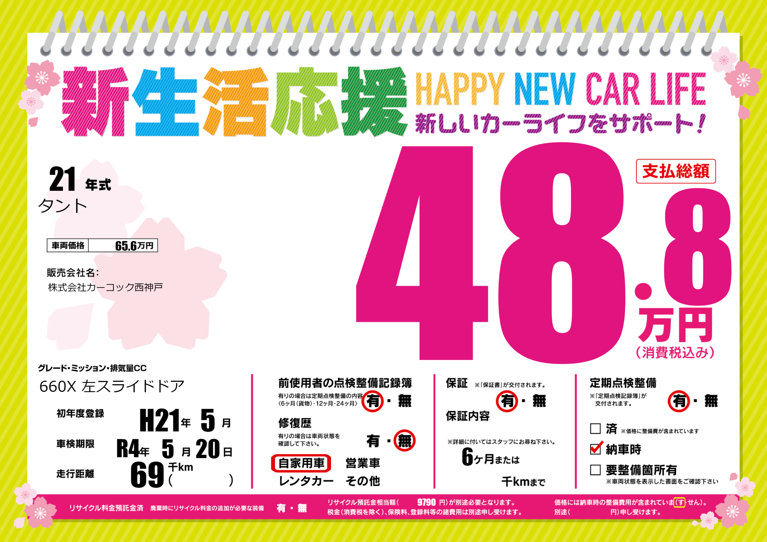 | 定期点検整備 | 定期点検整備あり 納車時あり | ||