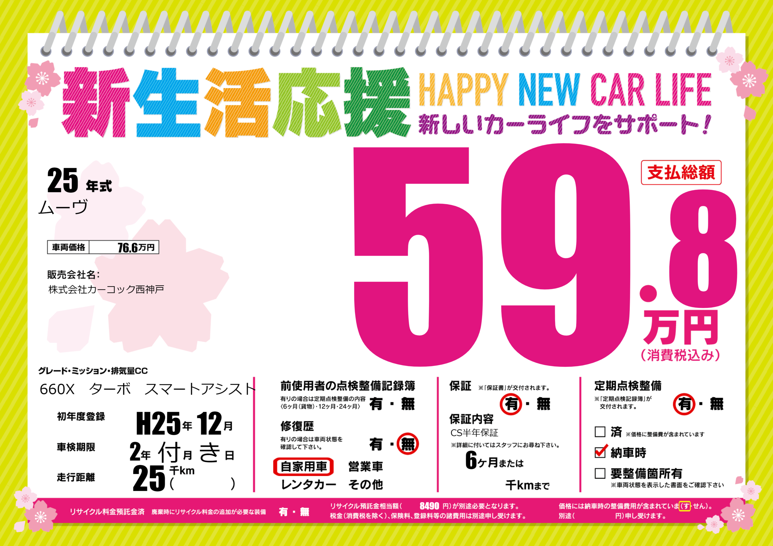 | 定期点検整備 | 定期点検整備あり 納車時あり | ||