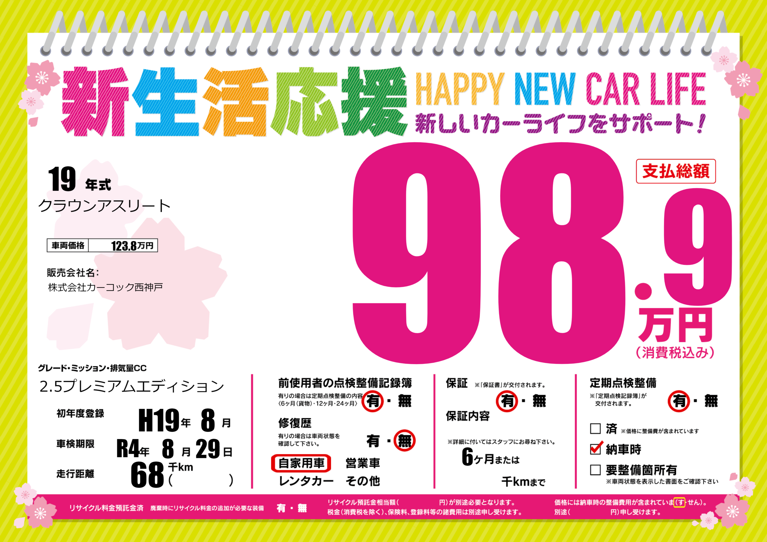 | 車名 | クラウンアスリート | グレード ミッション 排気量 |