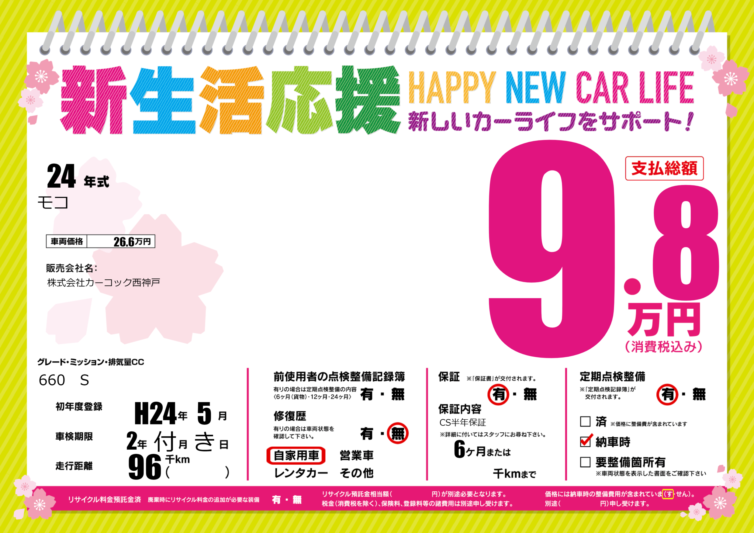 | 定期点検整備 | 定期点検整備あり 納車時あり | ||