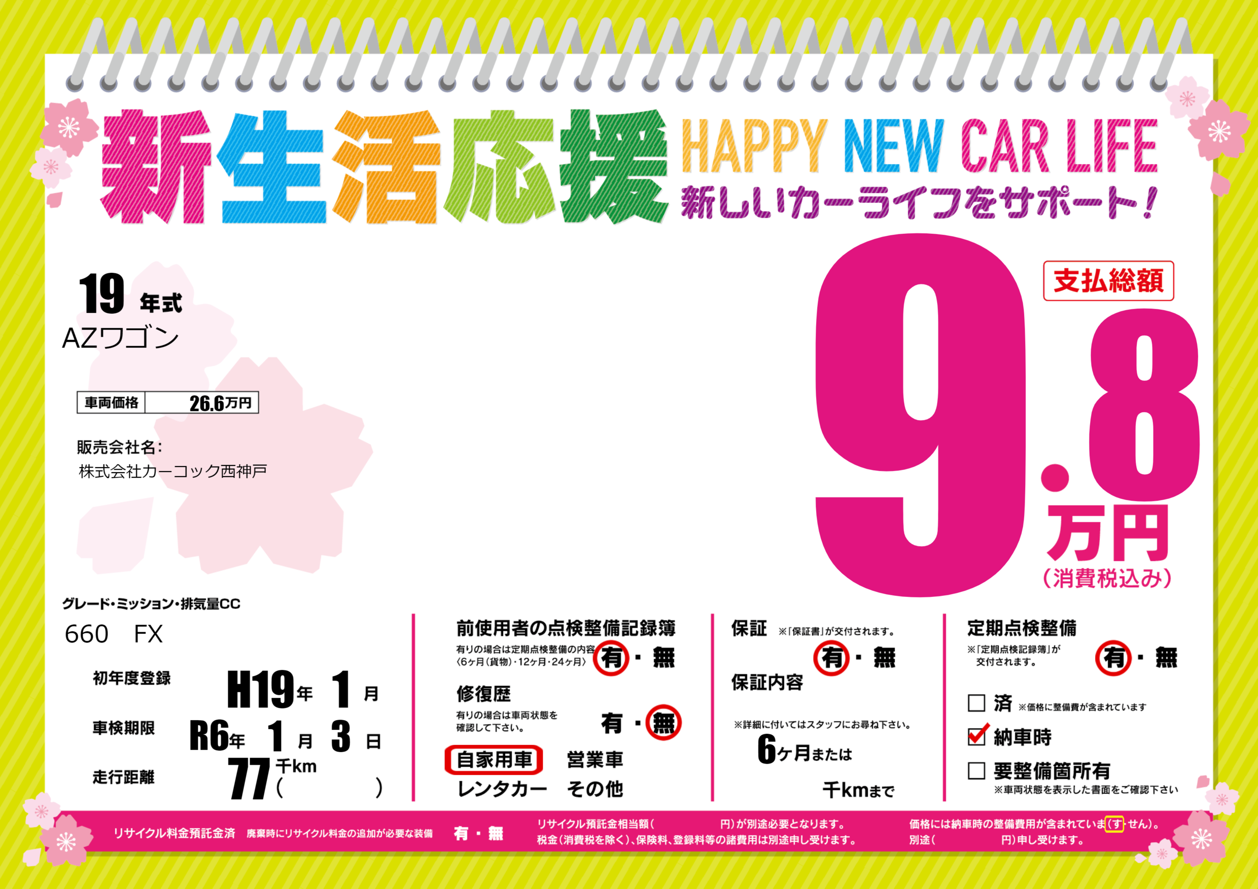 | 車名 | AZワゴン | グレード ミッション 排気量 |