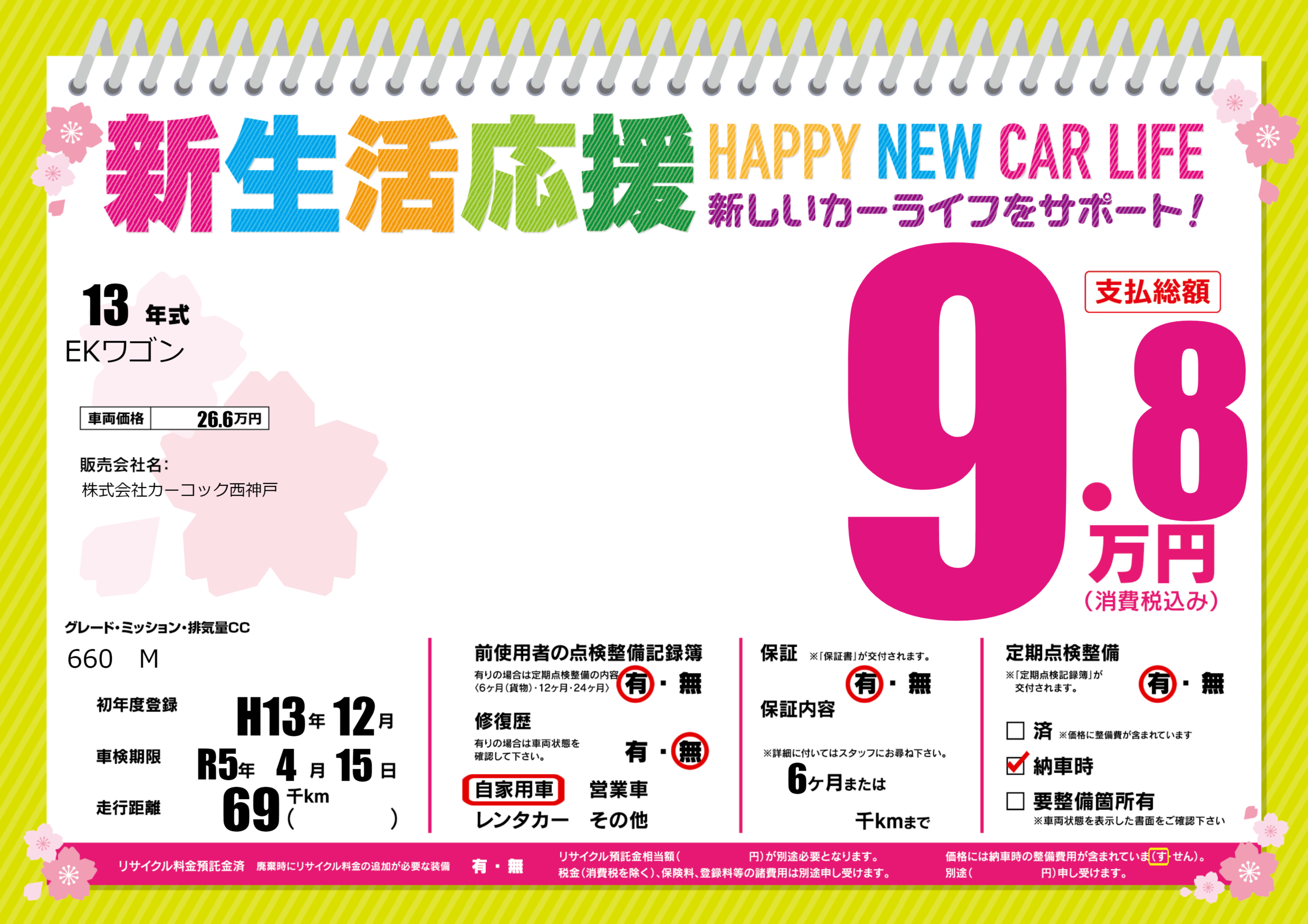 | 走行キロ | 6.9万km | 初年度登録 | H13年12月 |
