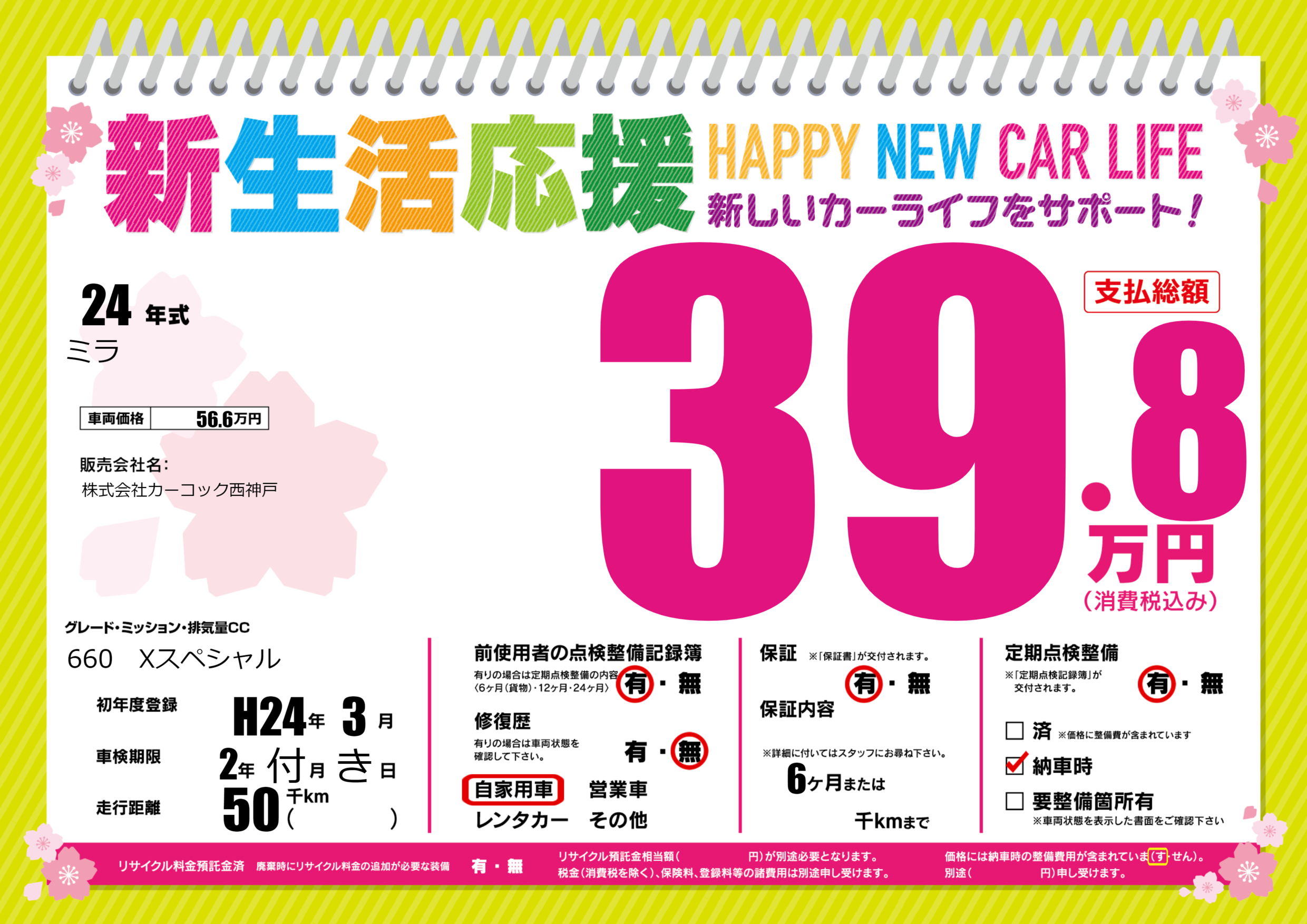 | 走行キロ | 5万km | 初年度登録 | H24年3月 |