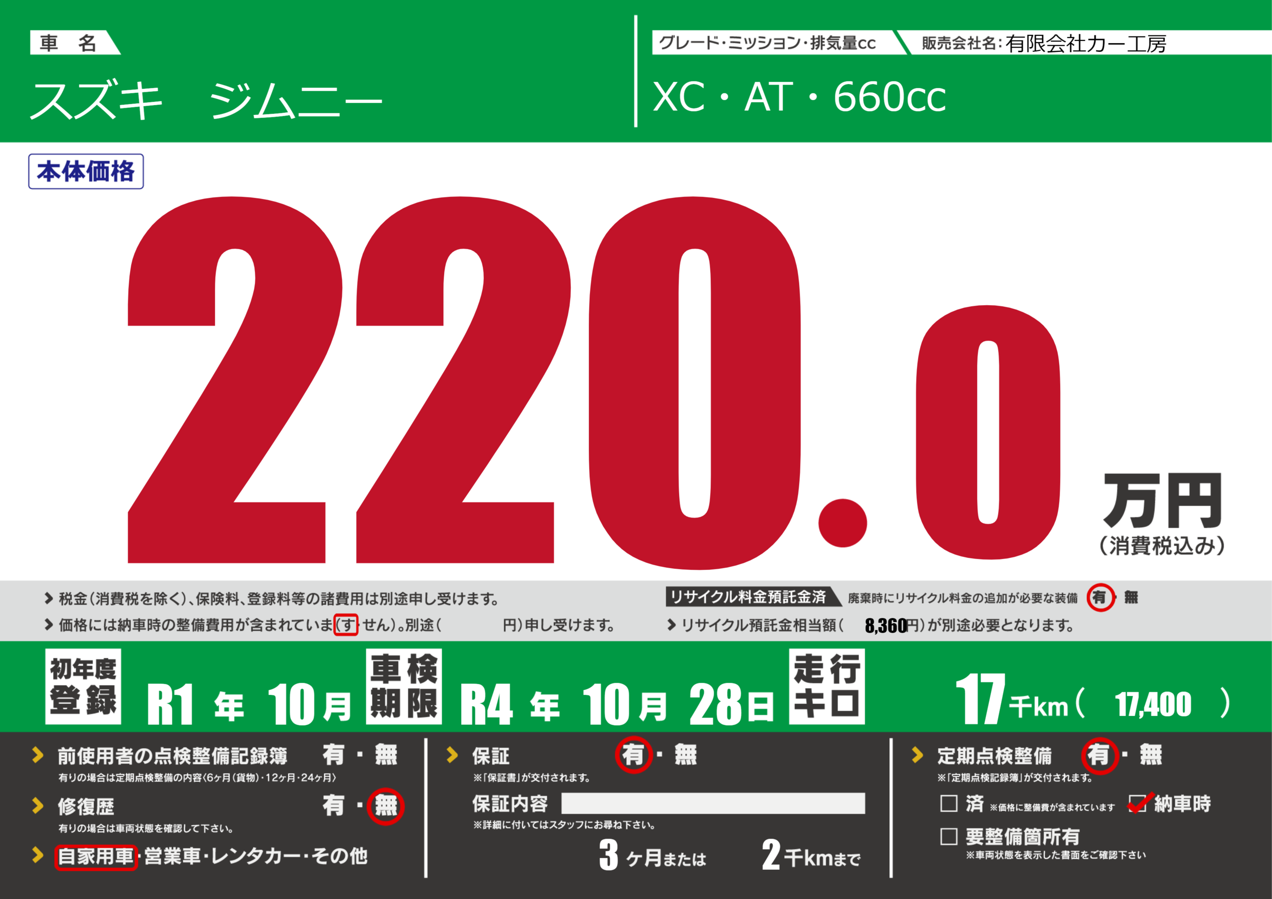 保証付き 保証内容(---) 3ヶ月または(2)千kmまで |