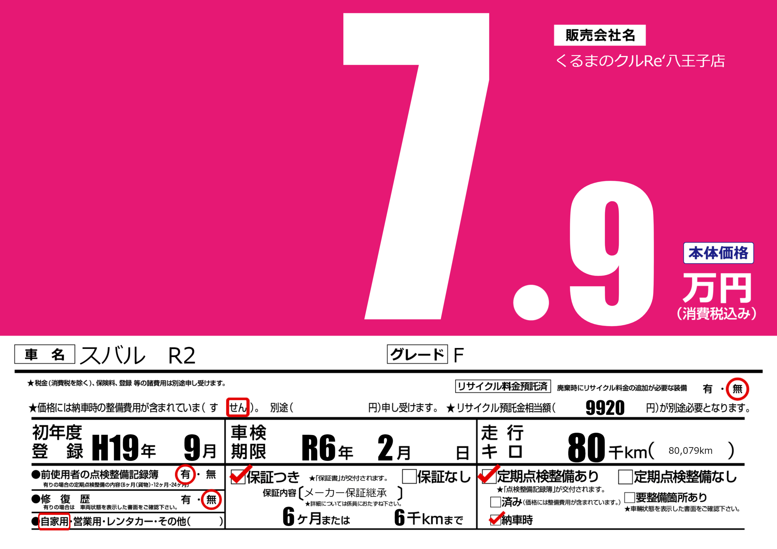 なし | 車検制限 | R6年2月---月 |