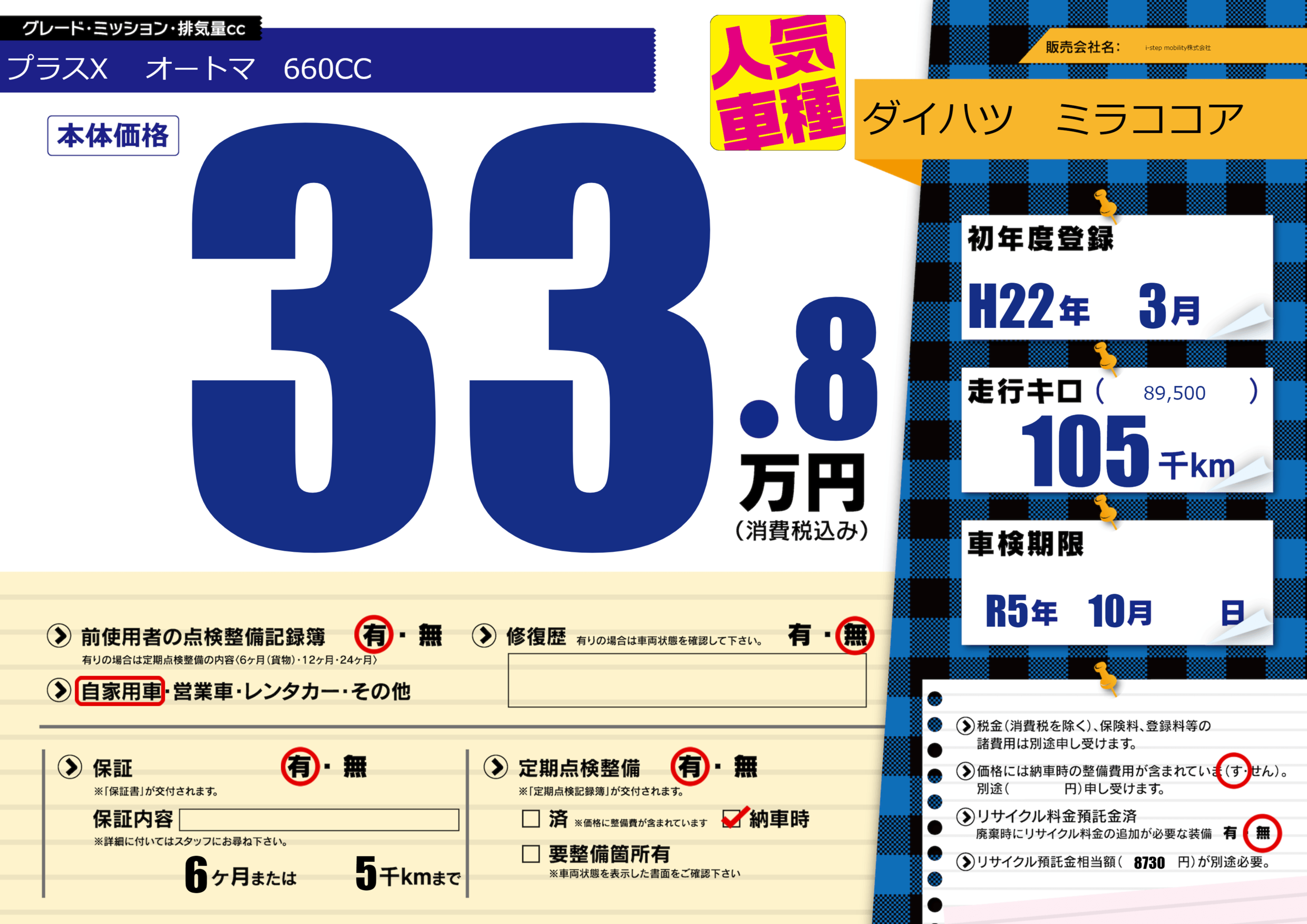 保証付き 保証内容(---) 6ヶ月または(5)千kmまで |