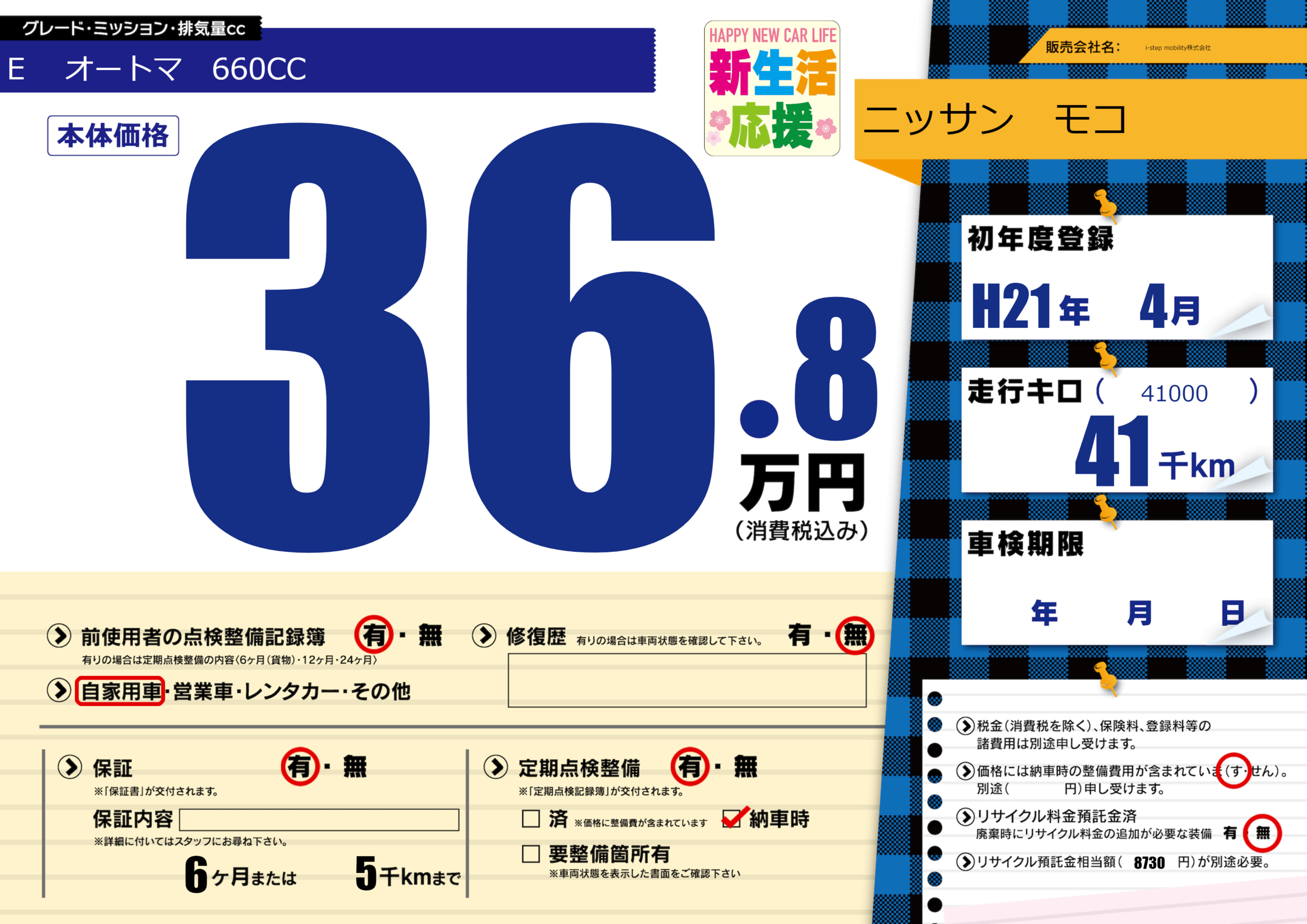 | 車名 | ニッサン モコ | グレード ミッション 排気量 |