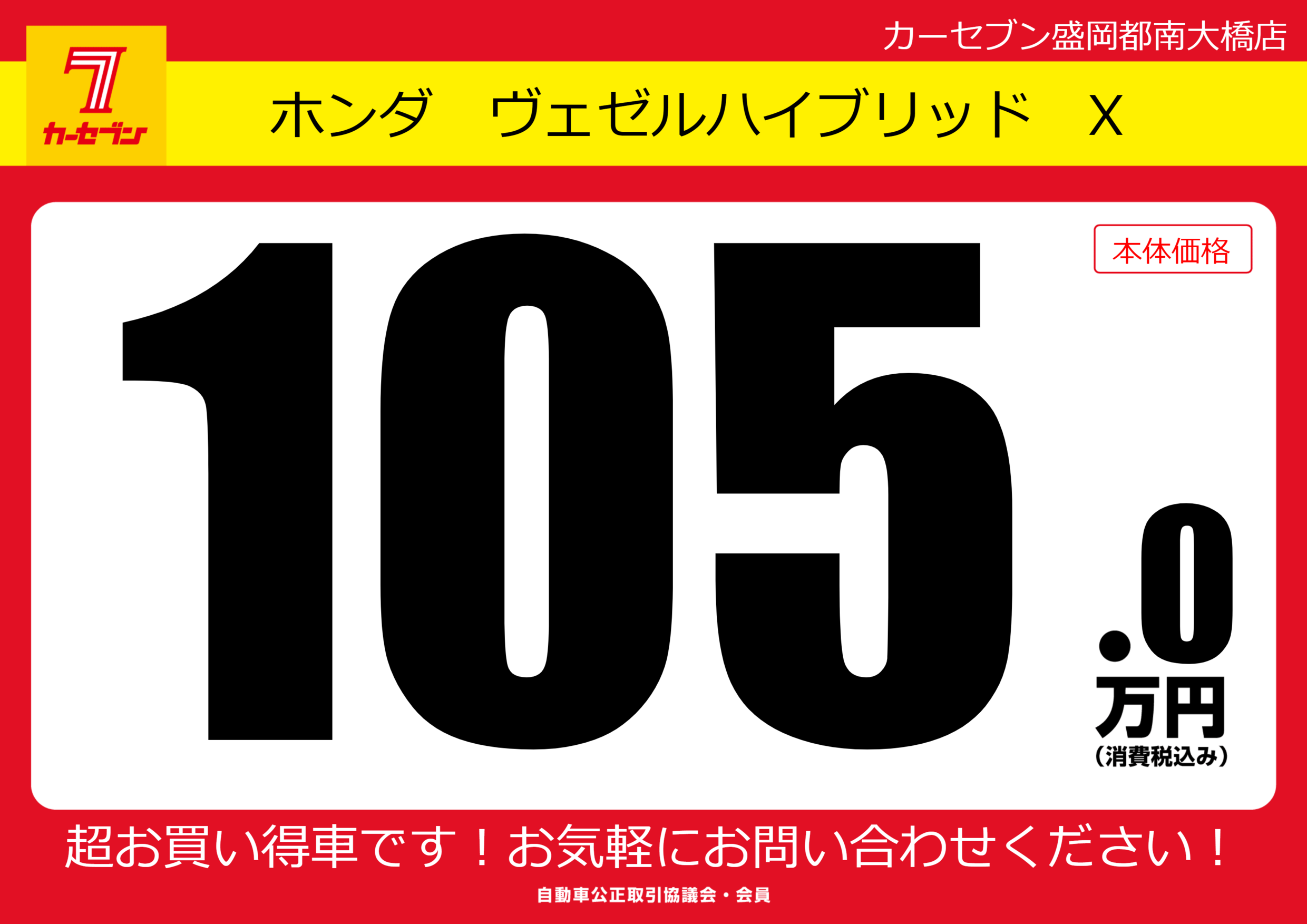 | 車名 | ホンダ ヴェゼルハイブリッド X | グレード ミッション 排気量 |