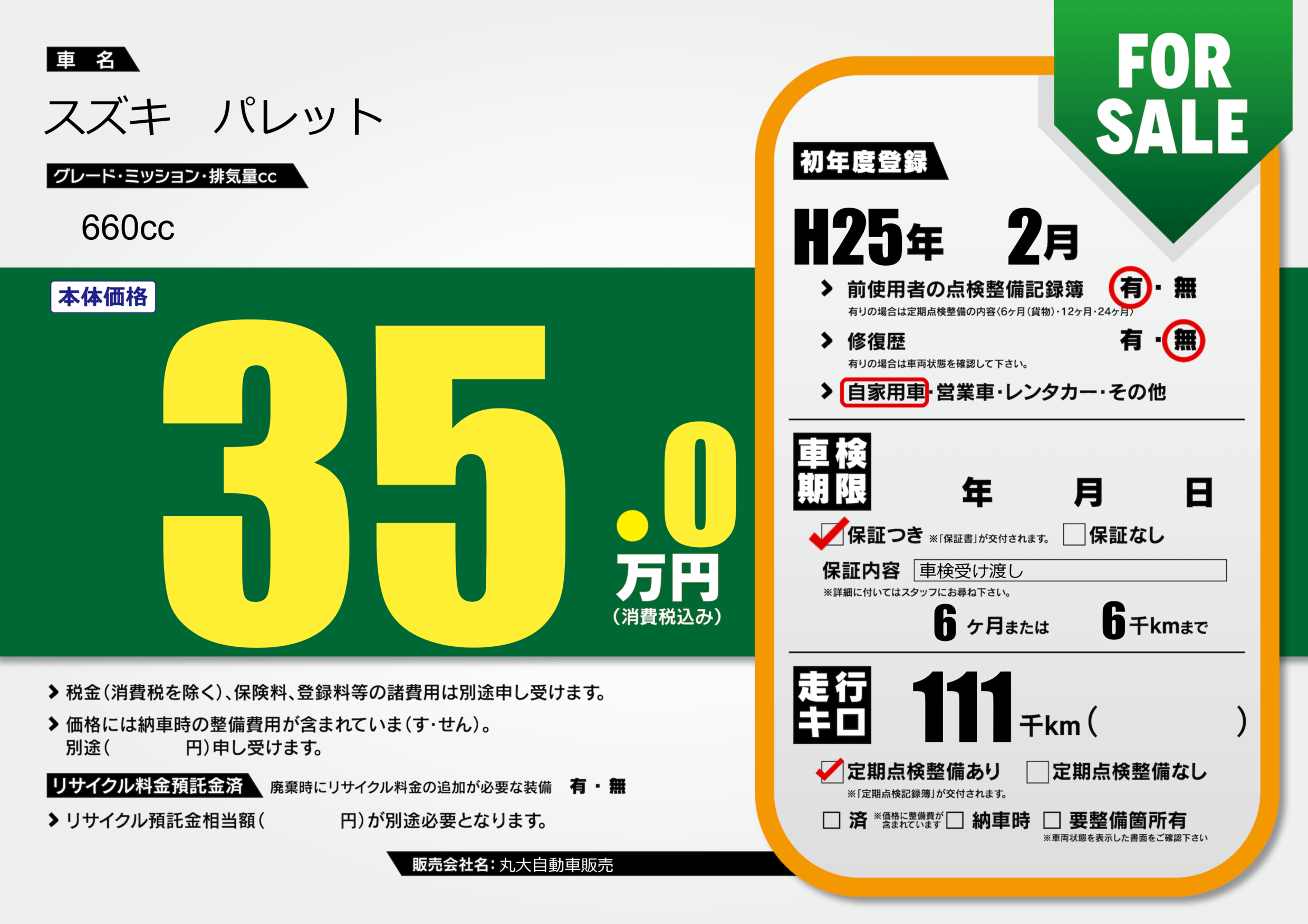 | 走行キロ | 11.1万km | 初年度登録 | H25年2月 |