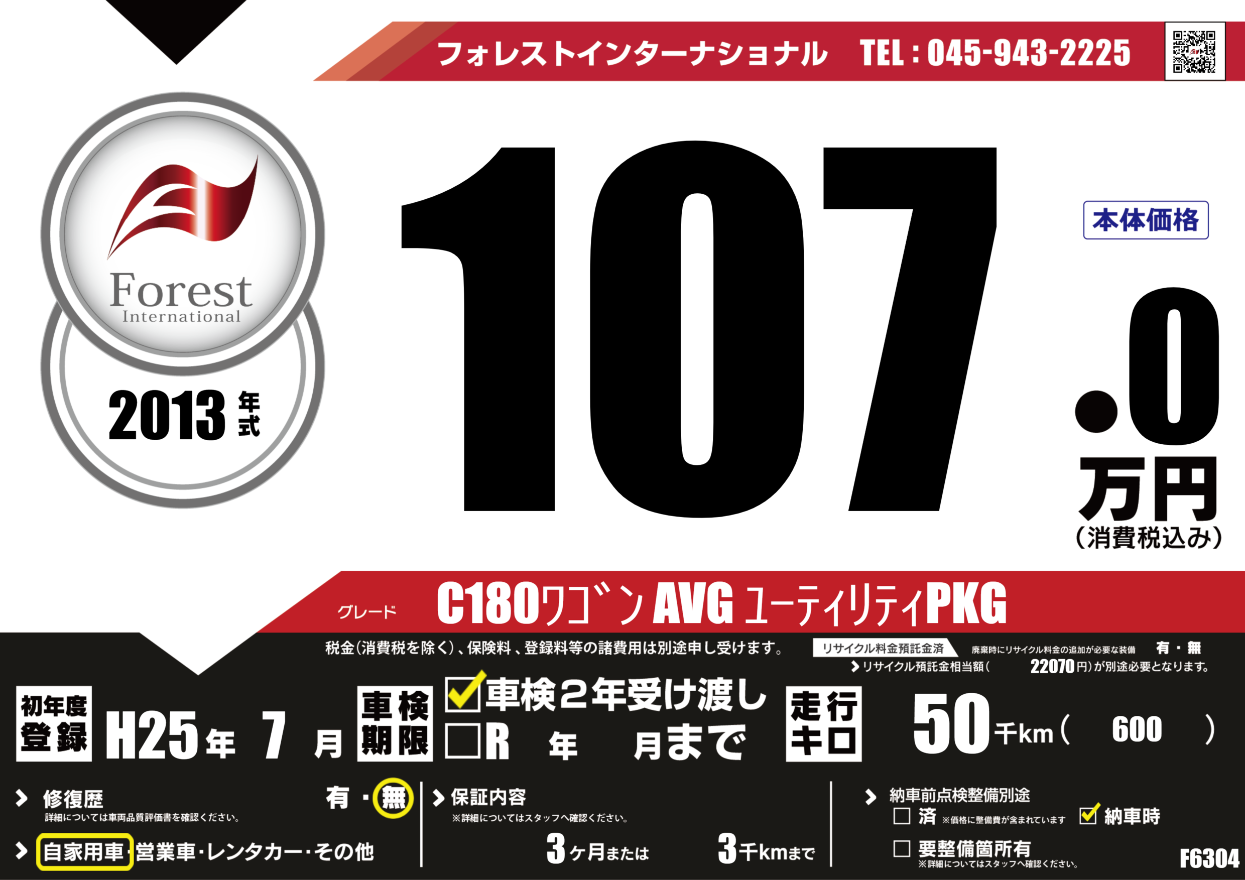 | 走行キロ | 5万km | 初年度登録 | H25年7月 |