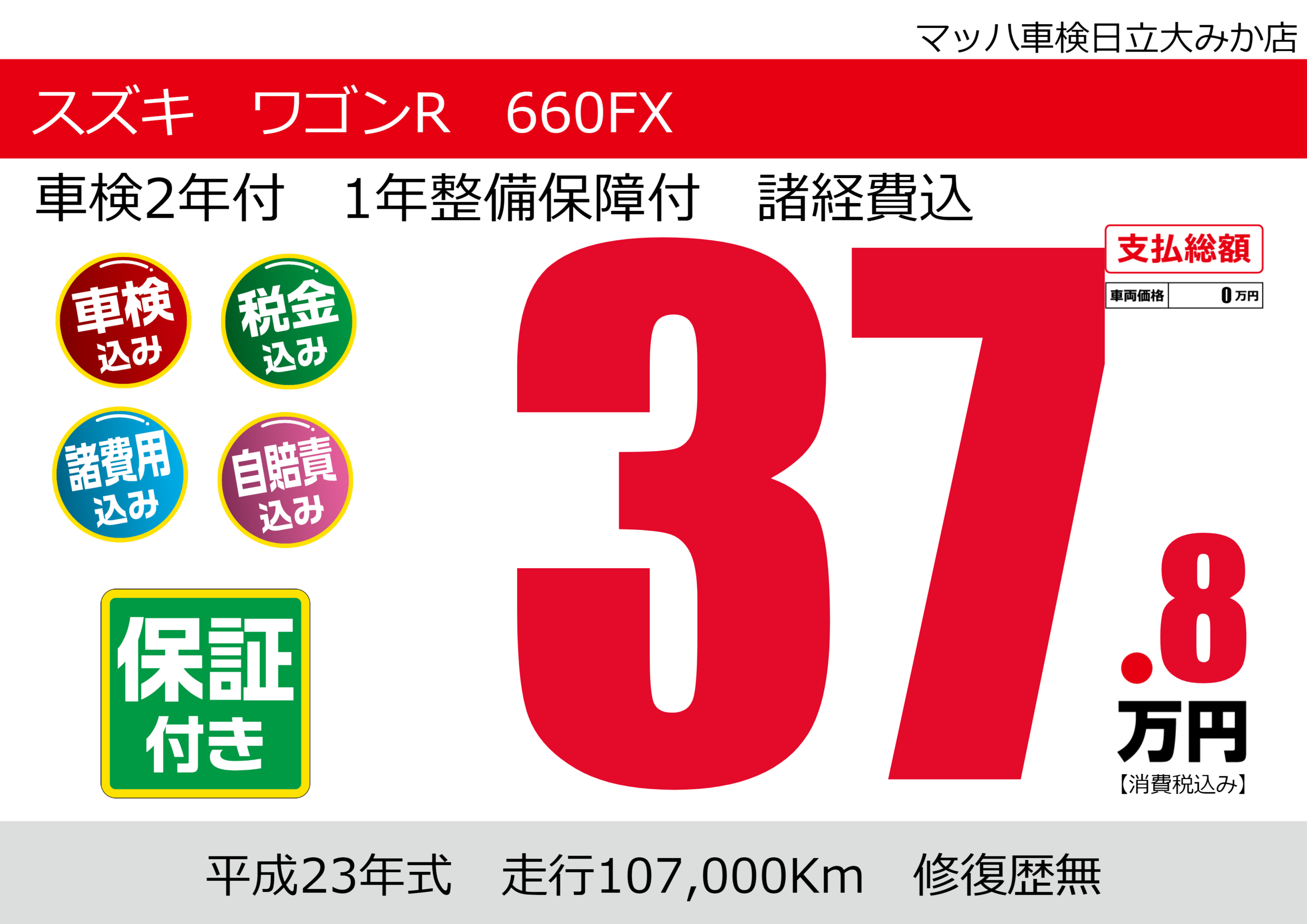 | 車名 | スズキ ワゴンR 660FX | グレード ミッション 排気量 |