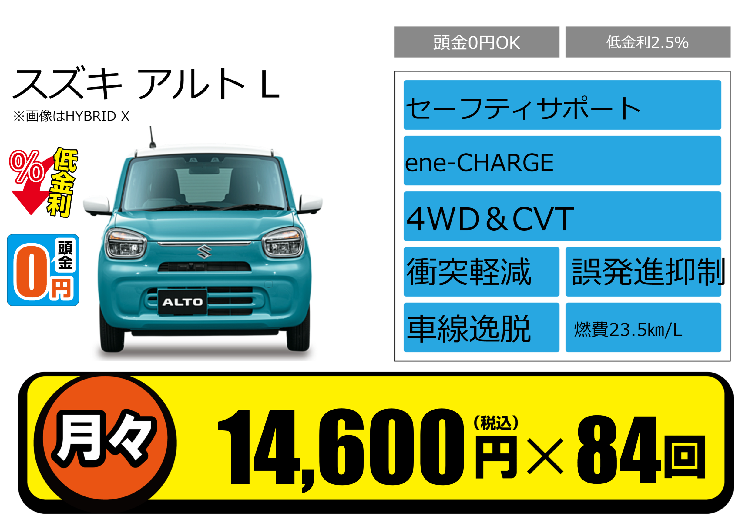 | 車名 | スズキ アルト L | グレード ミッション 排気量 |
