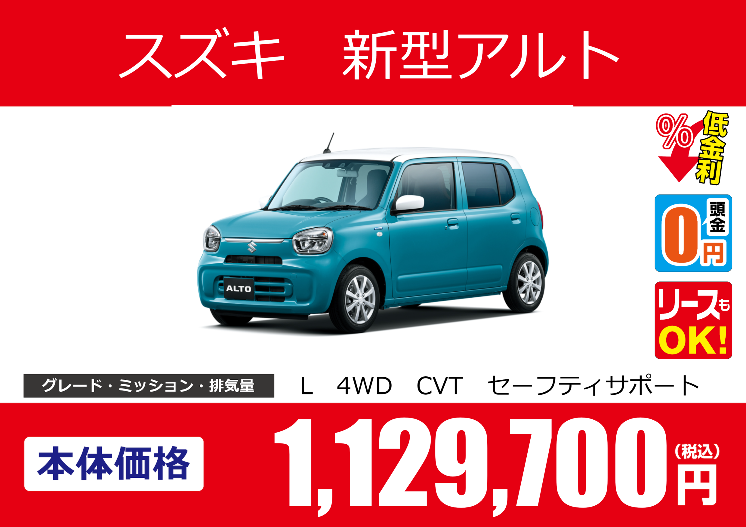 | 車名 | スズキ 新型アルト | グレード ミッション 排気量 |