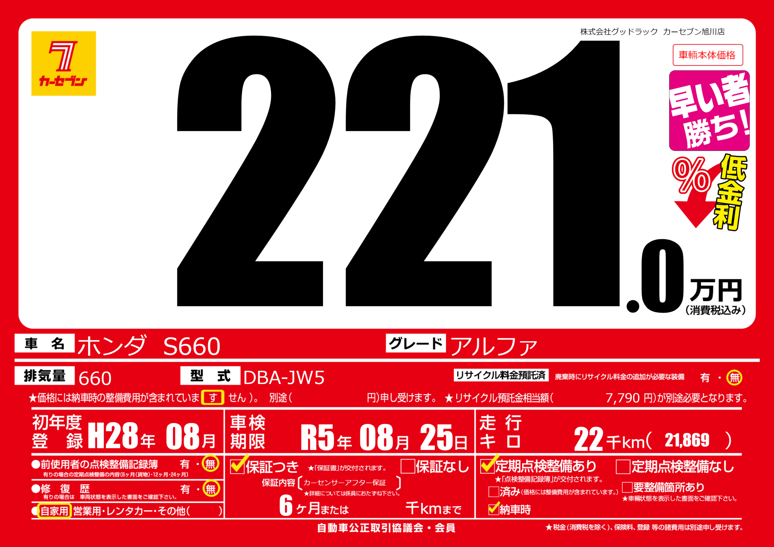 | 走行キロ | 2.2万km | ||