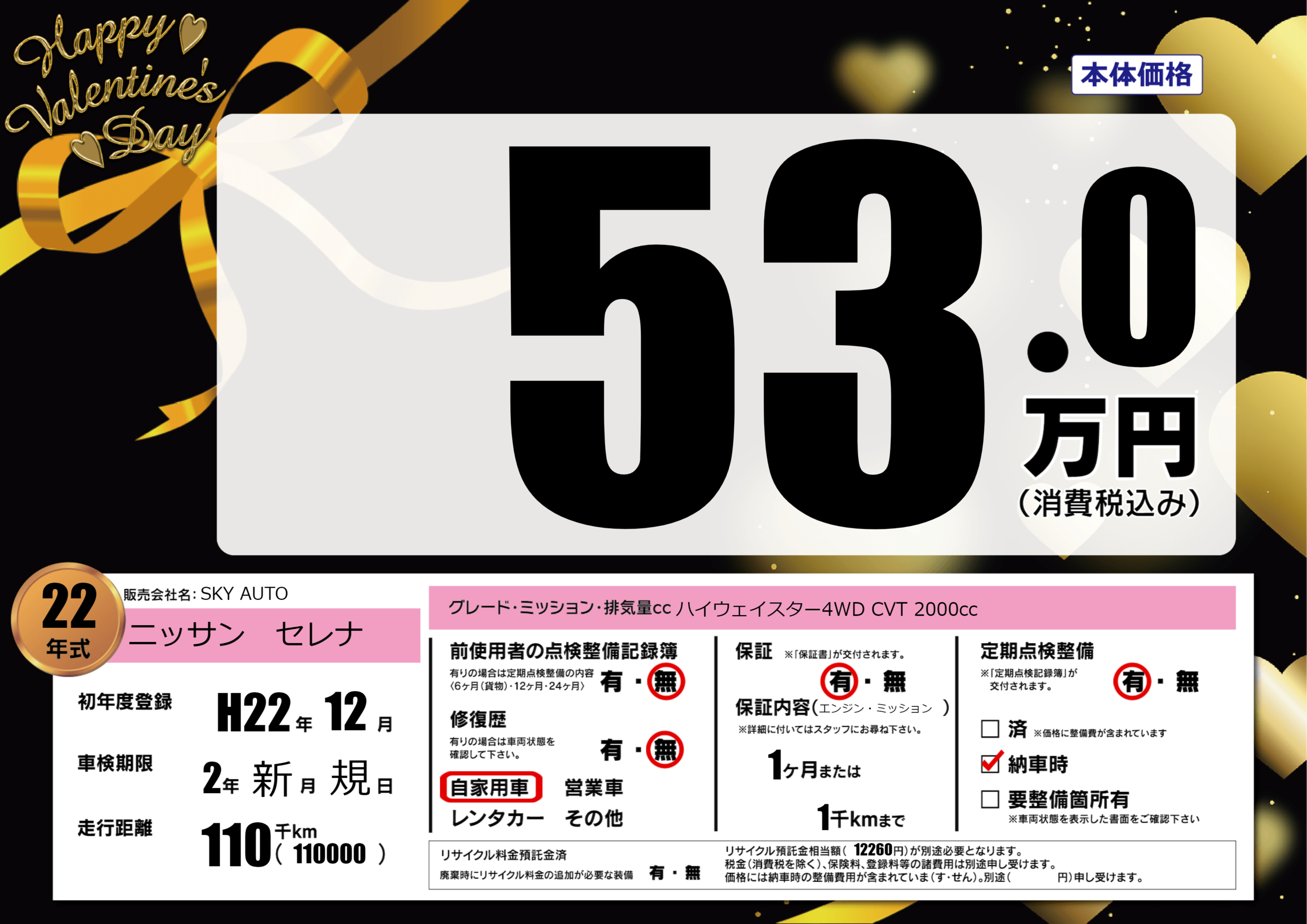 | 走行キロ | 11万km | 初年度登録 | H22年12月 |