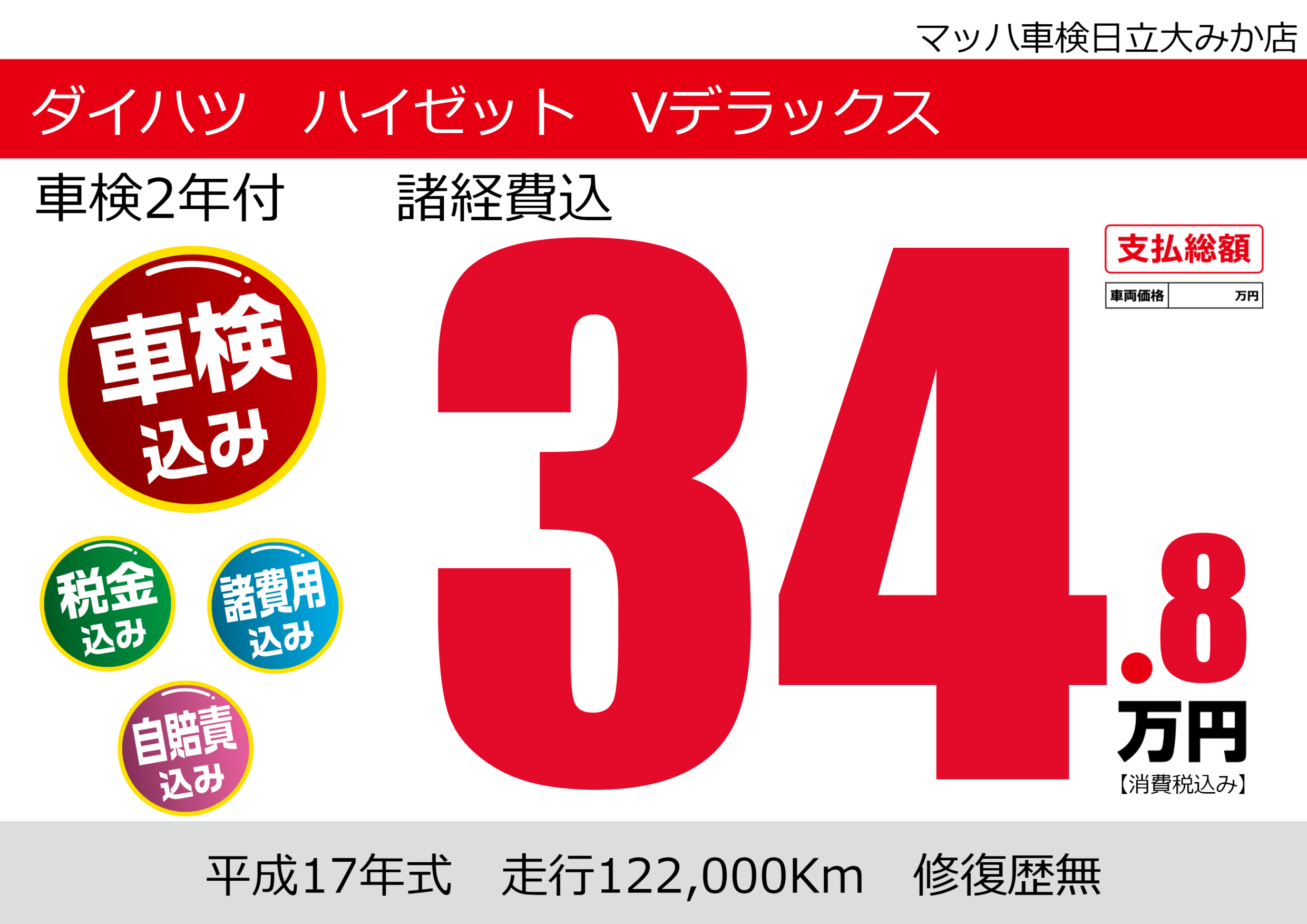 | 車名 | ダイハツ ハイゼット Vデラックス | グレード ミッション 排気量 |