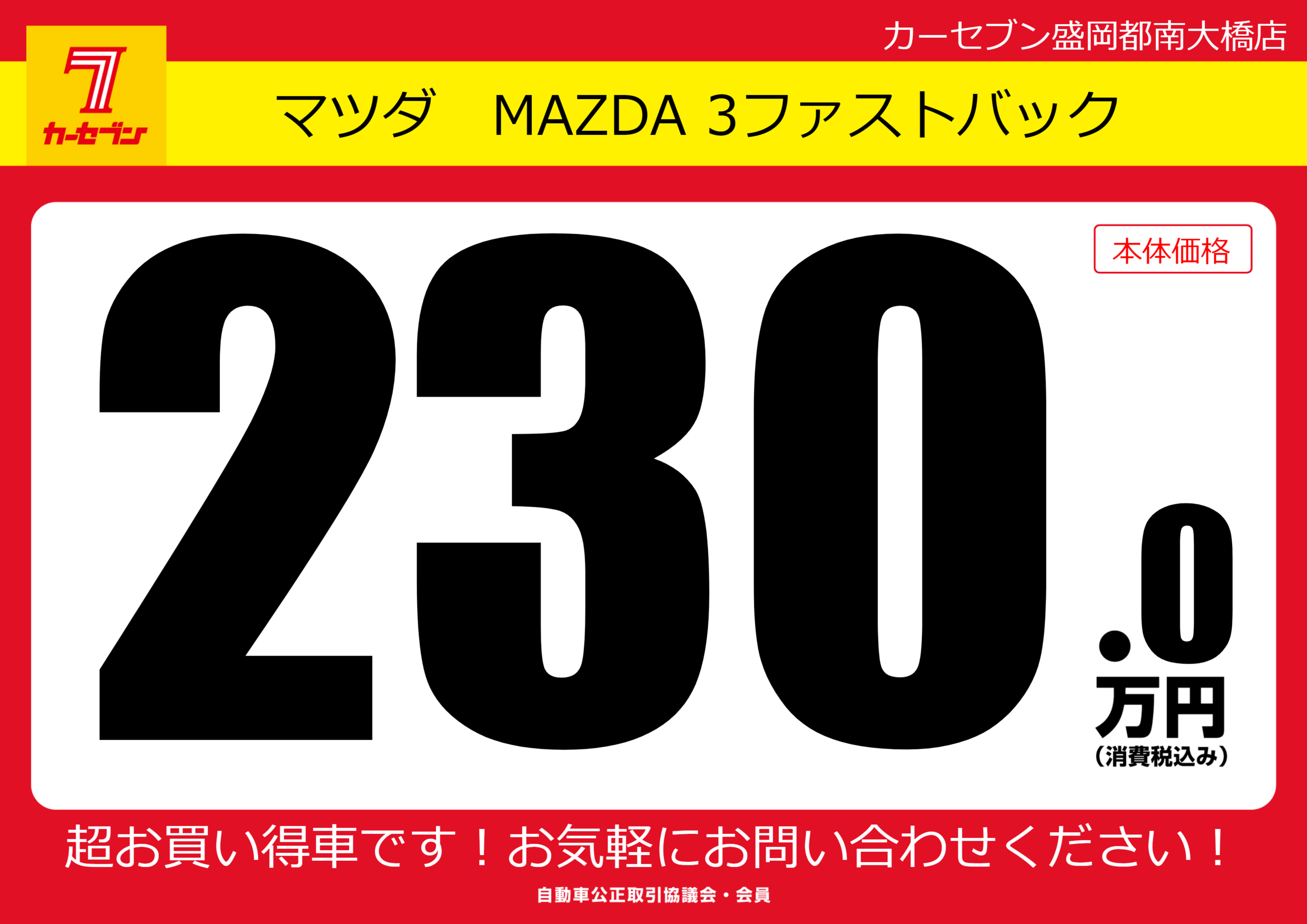 | 車名 | マツダ MAZDA 3ファストバック | グレード ミッション 排気量 |