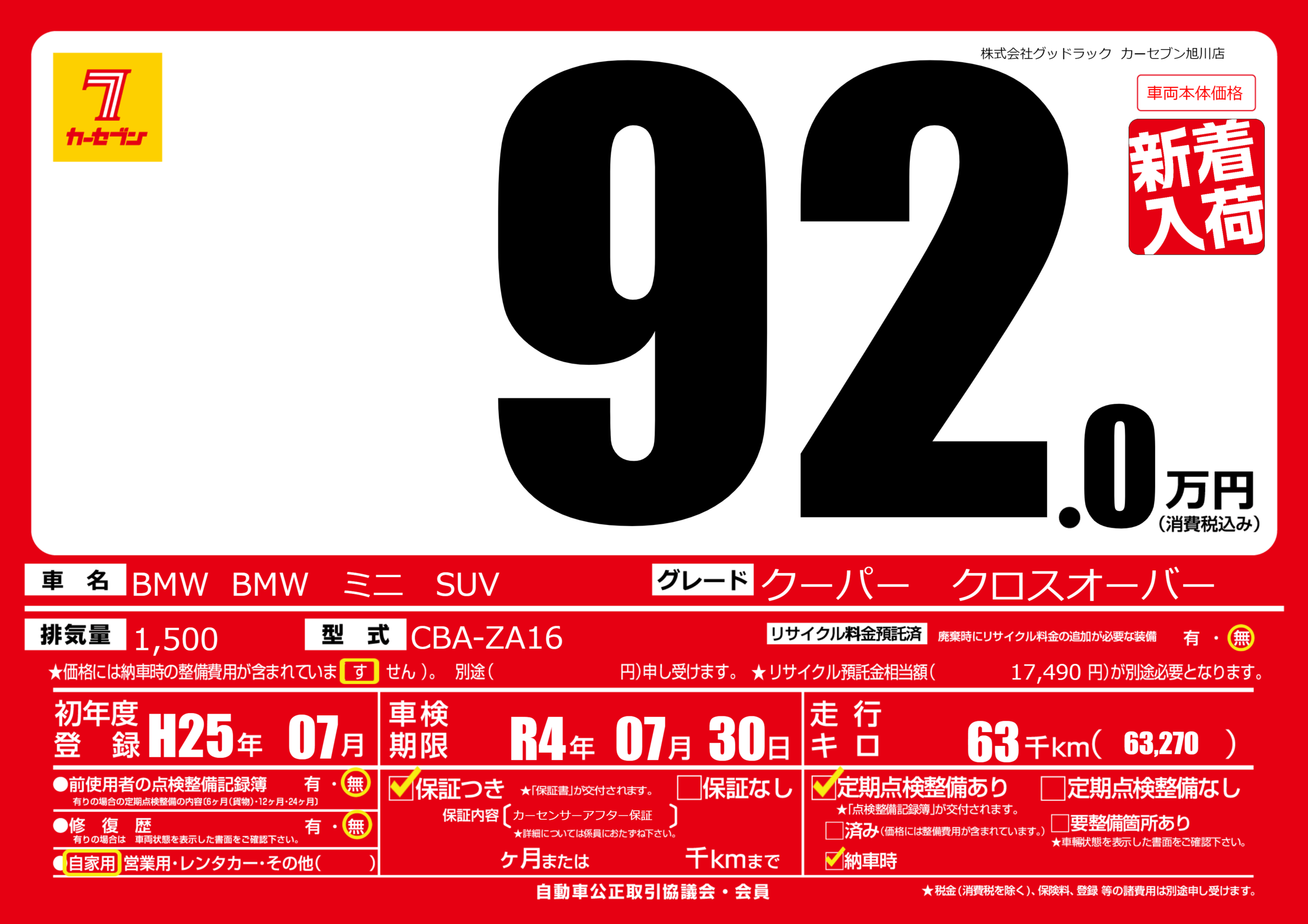 | 車名 | BMW BMW ミニ SUV | グレード ミッション 排気量 |
