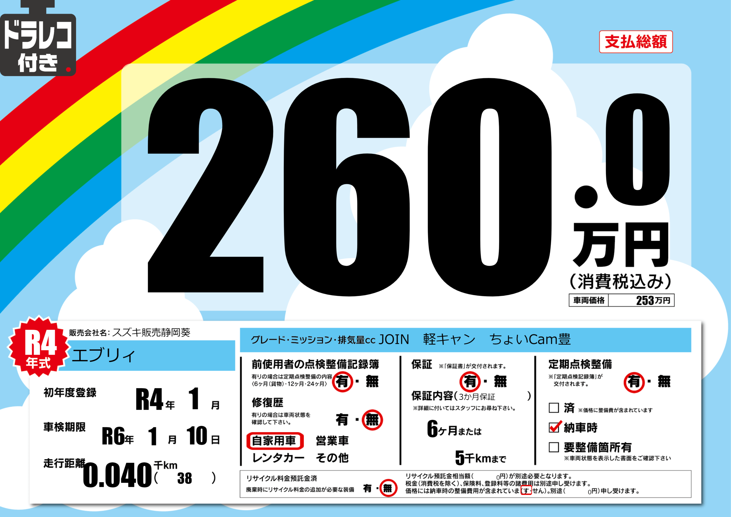 | 車名 | エブリィ | グレード ミッション 排気量 |