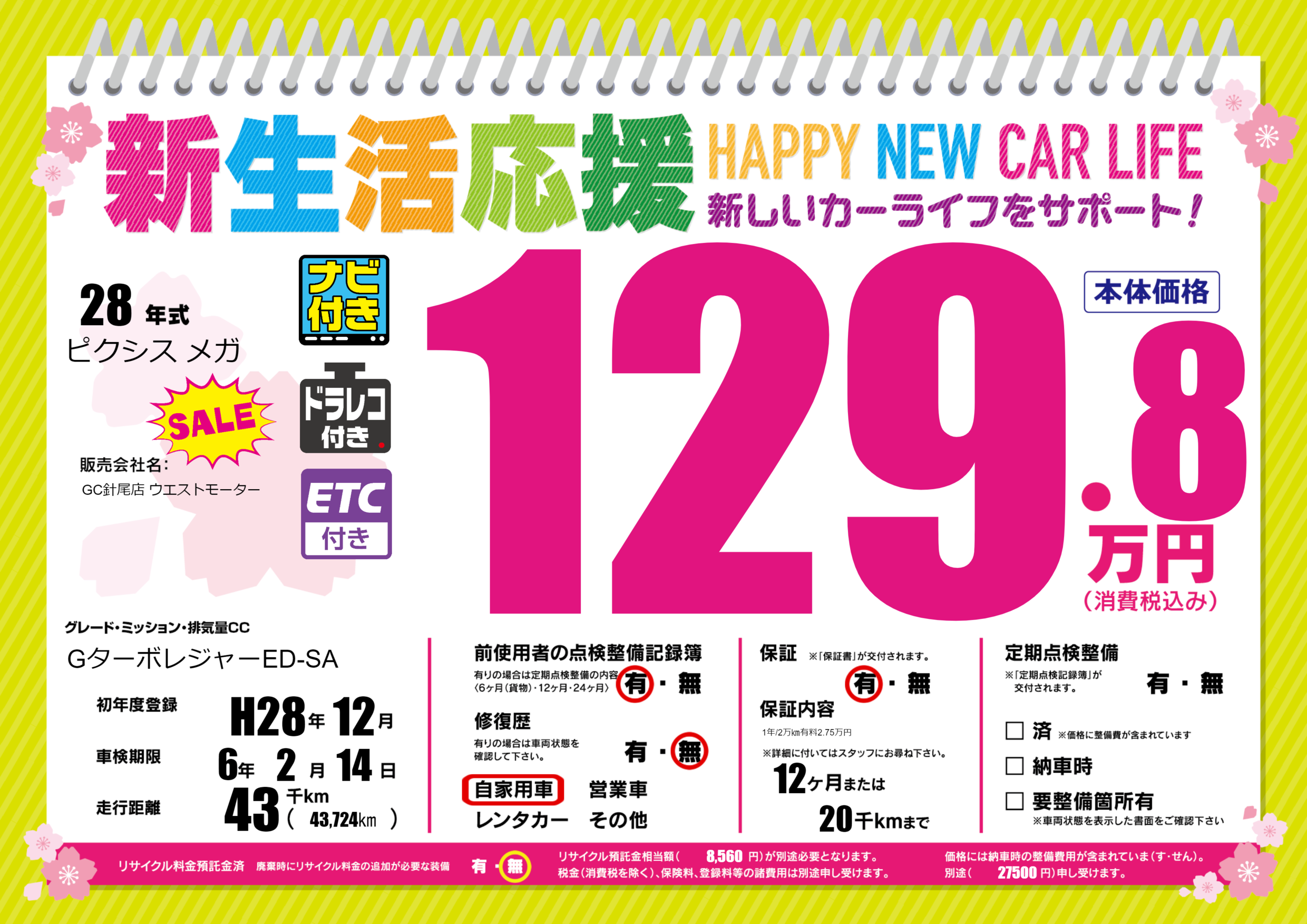 | 車名 | ピクシス メガ | グレード ミッション 排気量 |