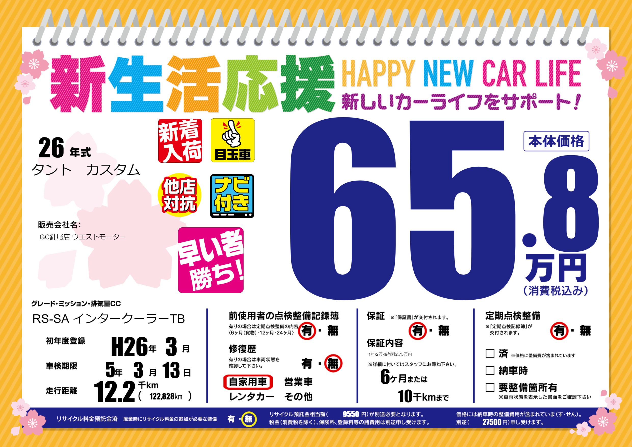 | 車名 | タント カスタム | グレード ミッション 排気量 |