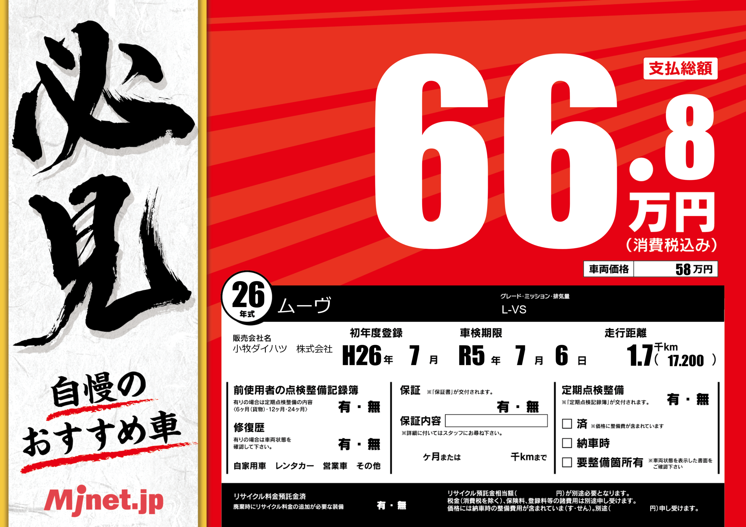 | 車名 | ムーヴ | グレード ミッション 排気量 |