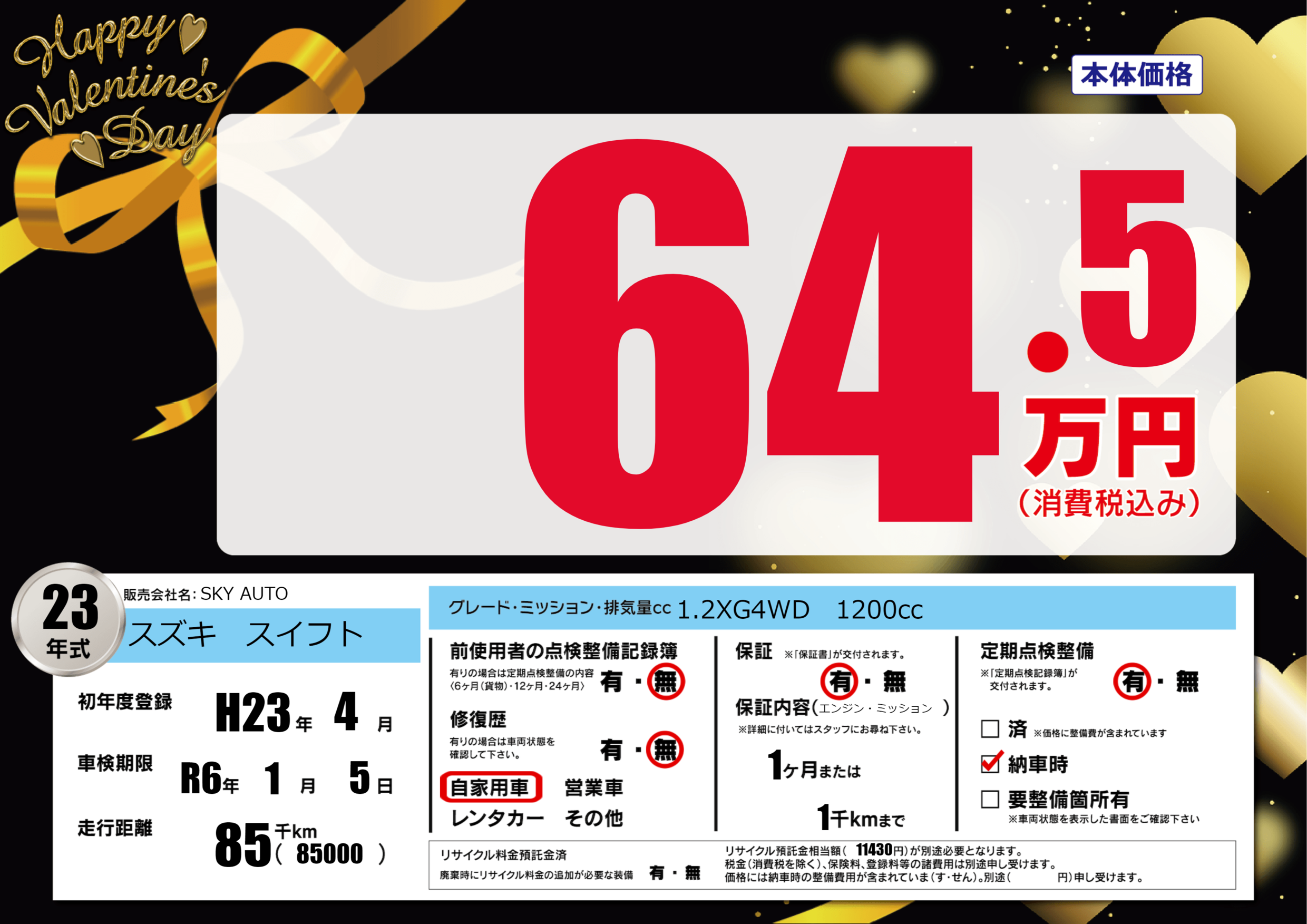 | 走行キロ | 8.5万km | 初年度登録 | H23年4月 |