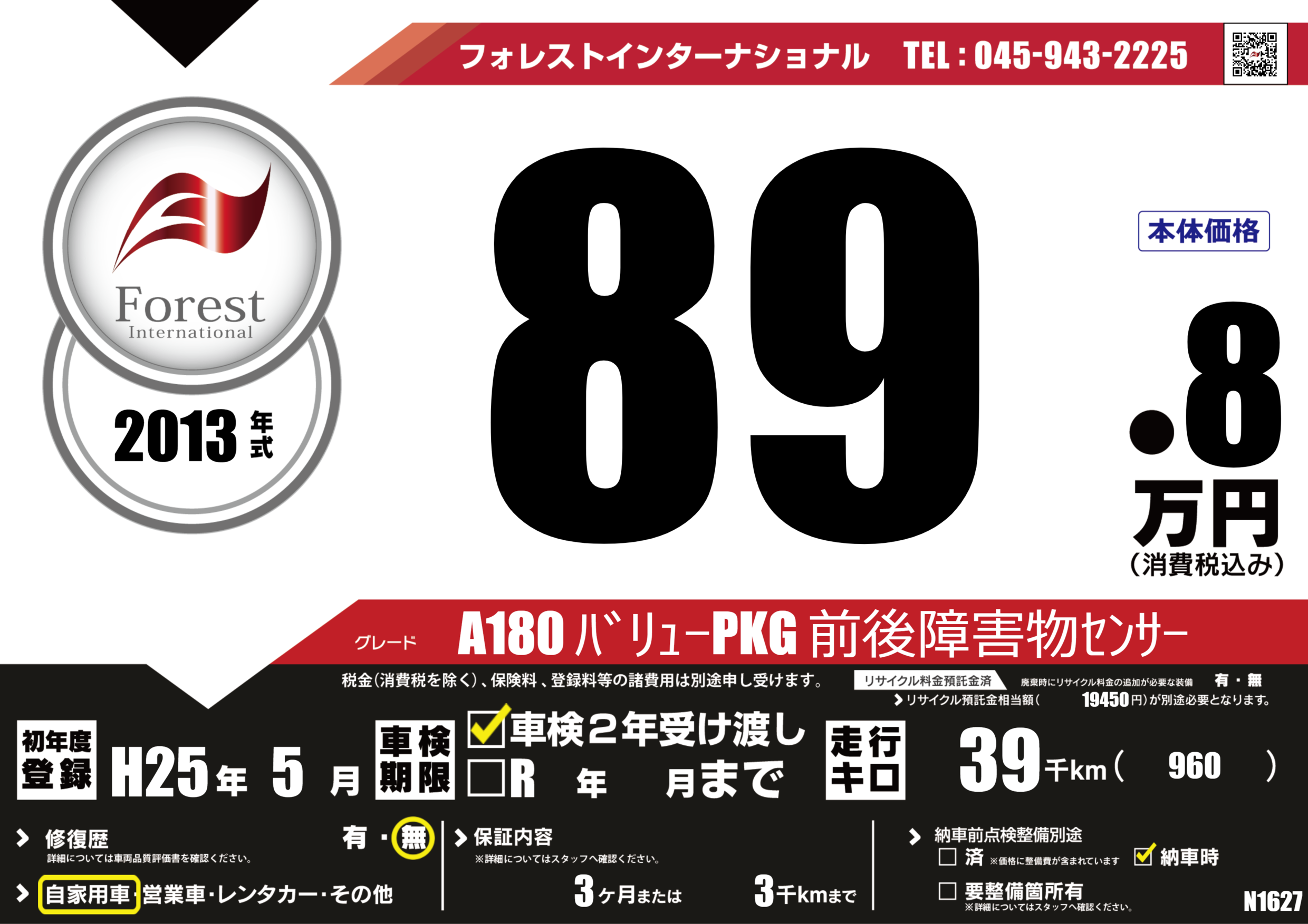 | 走行キロ | 3.9万km | 初年度登録 | H25年5月 |