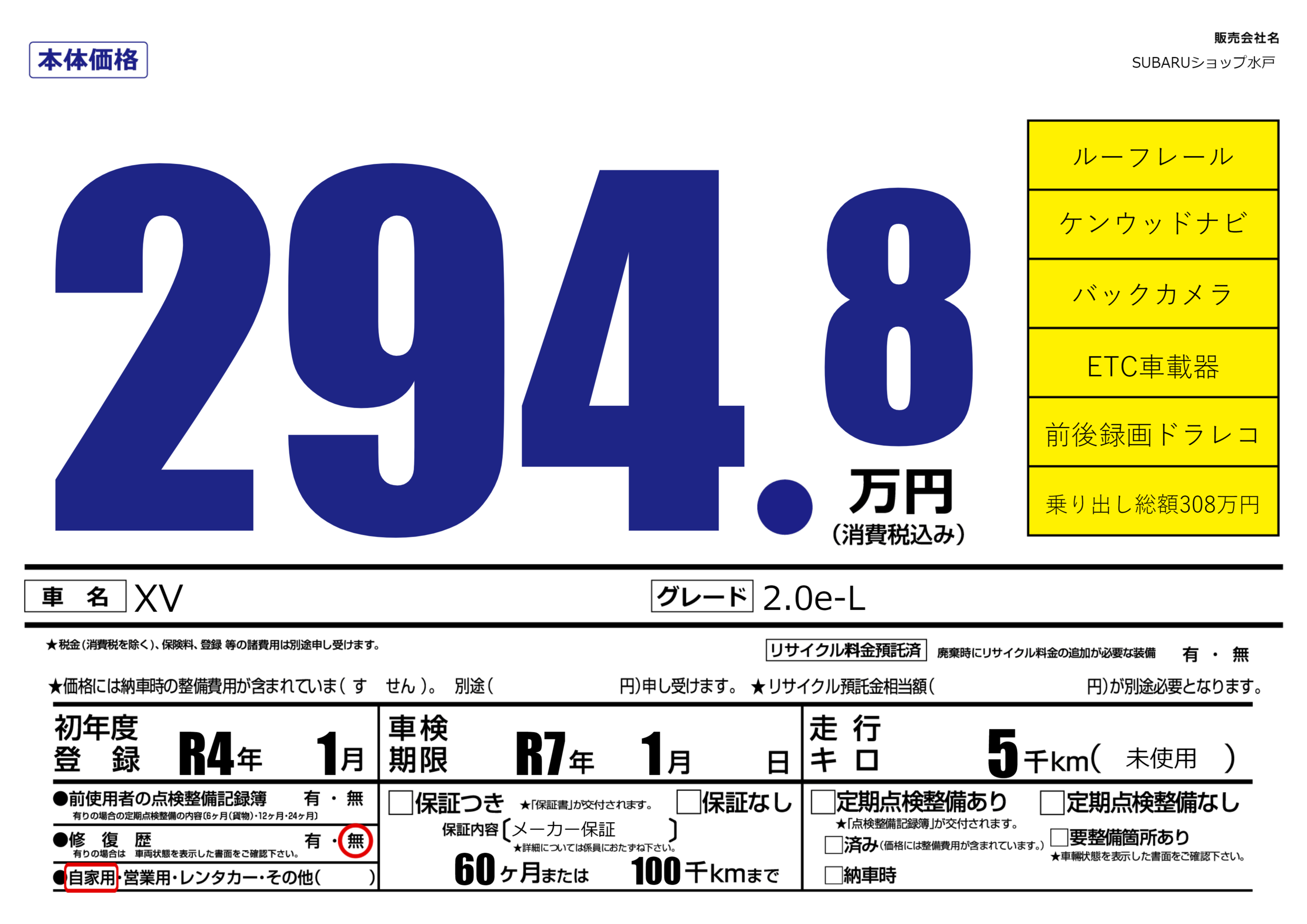 | 走行キロ | 0.5万km | 初年度登録 | R4年1月 |