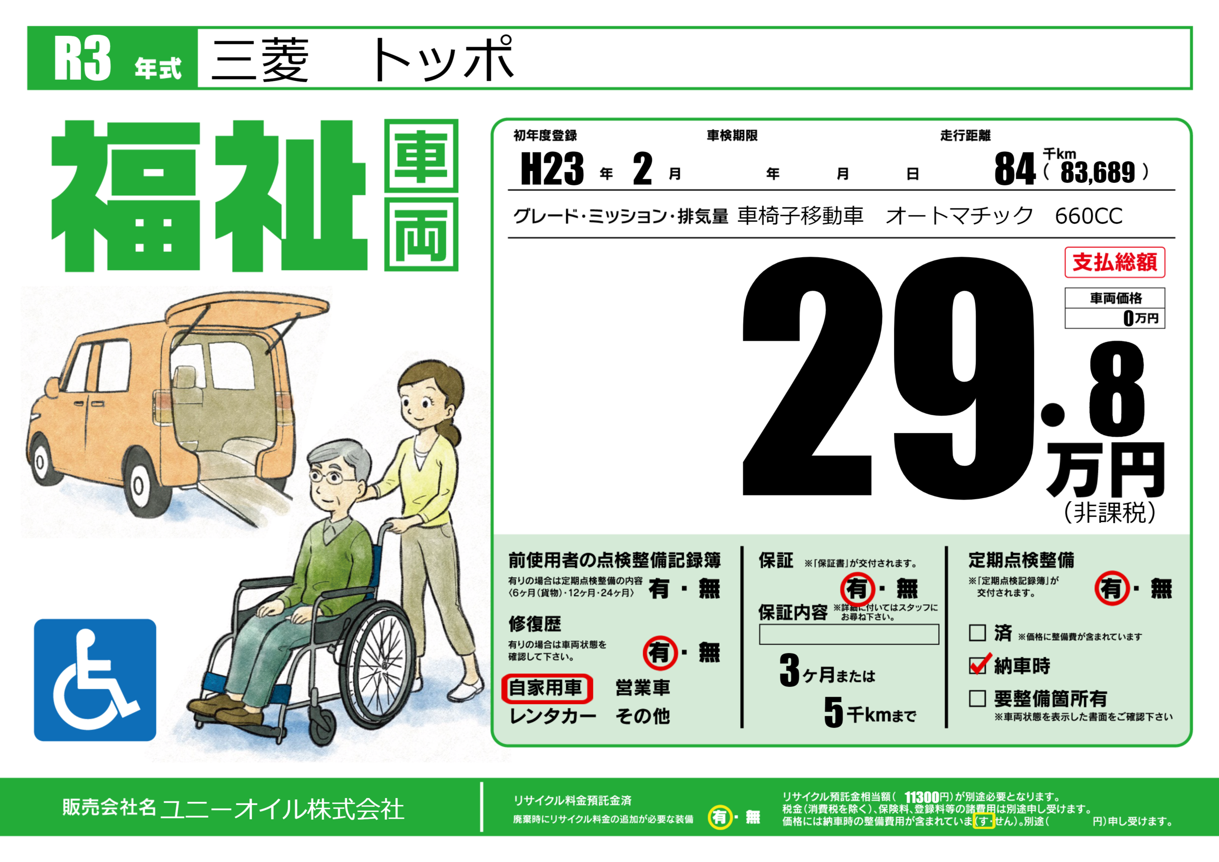 保証付き 保証内容(---) 3ヶ月または(5)千kmまで |