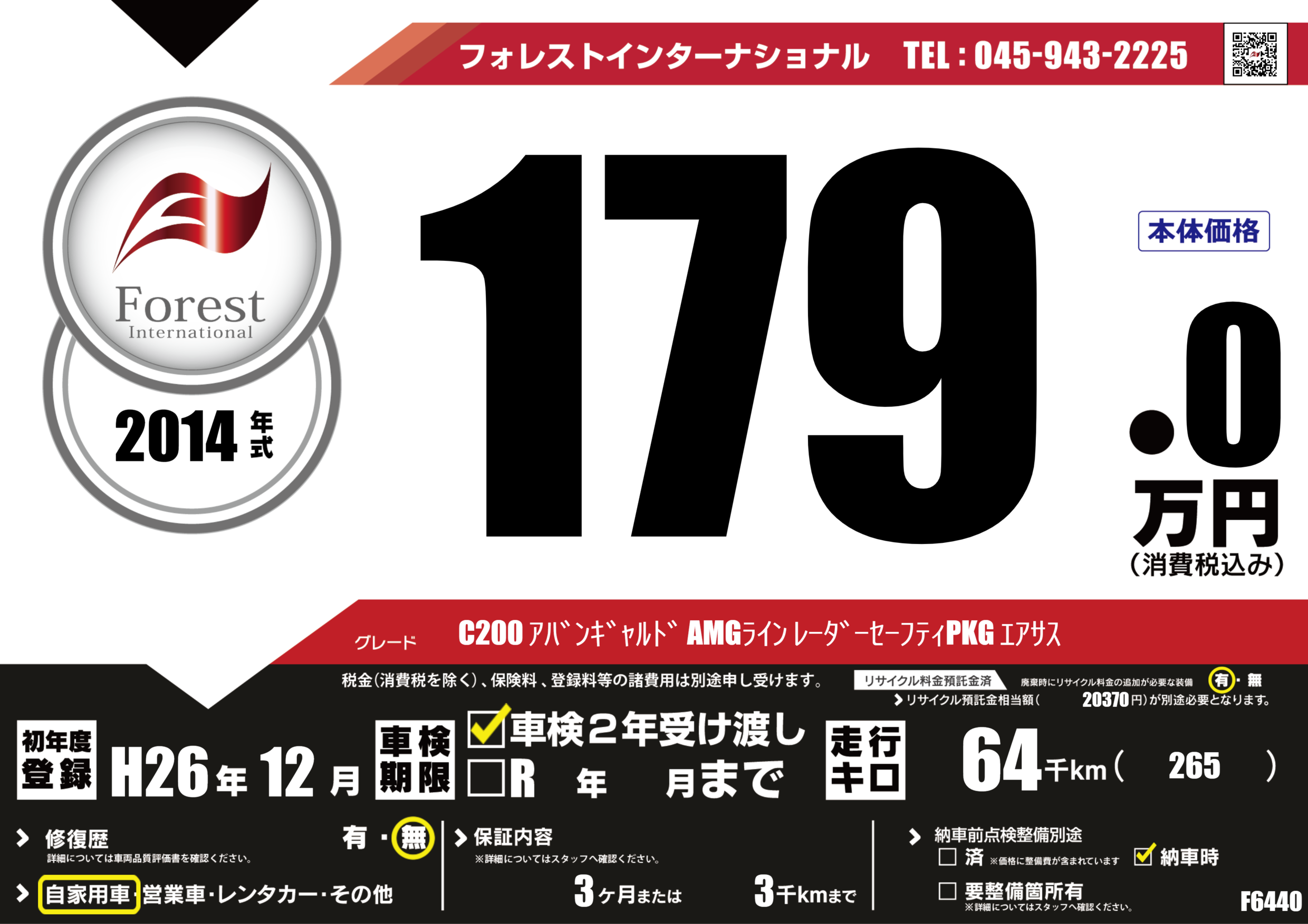 | 走行キロ | 6.4万km | 初年度登録 | H26年12月 |