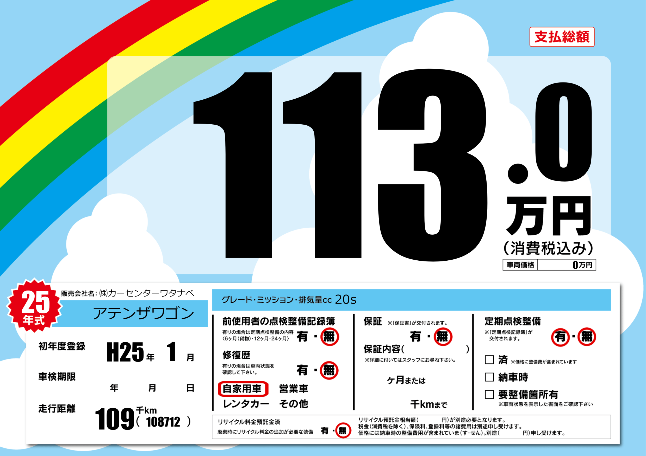 | 車名 | アテンザワゴン | グレード ミッション 排気量 |