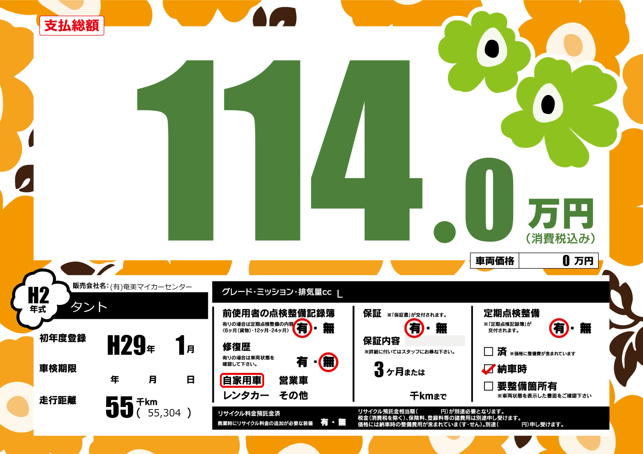| 定期点検整備 | 定期点検整備あり 納車時あり | ||