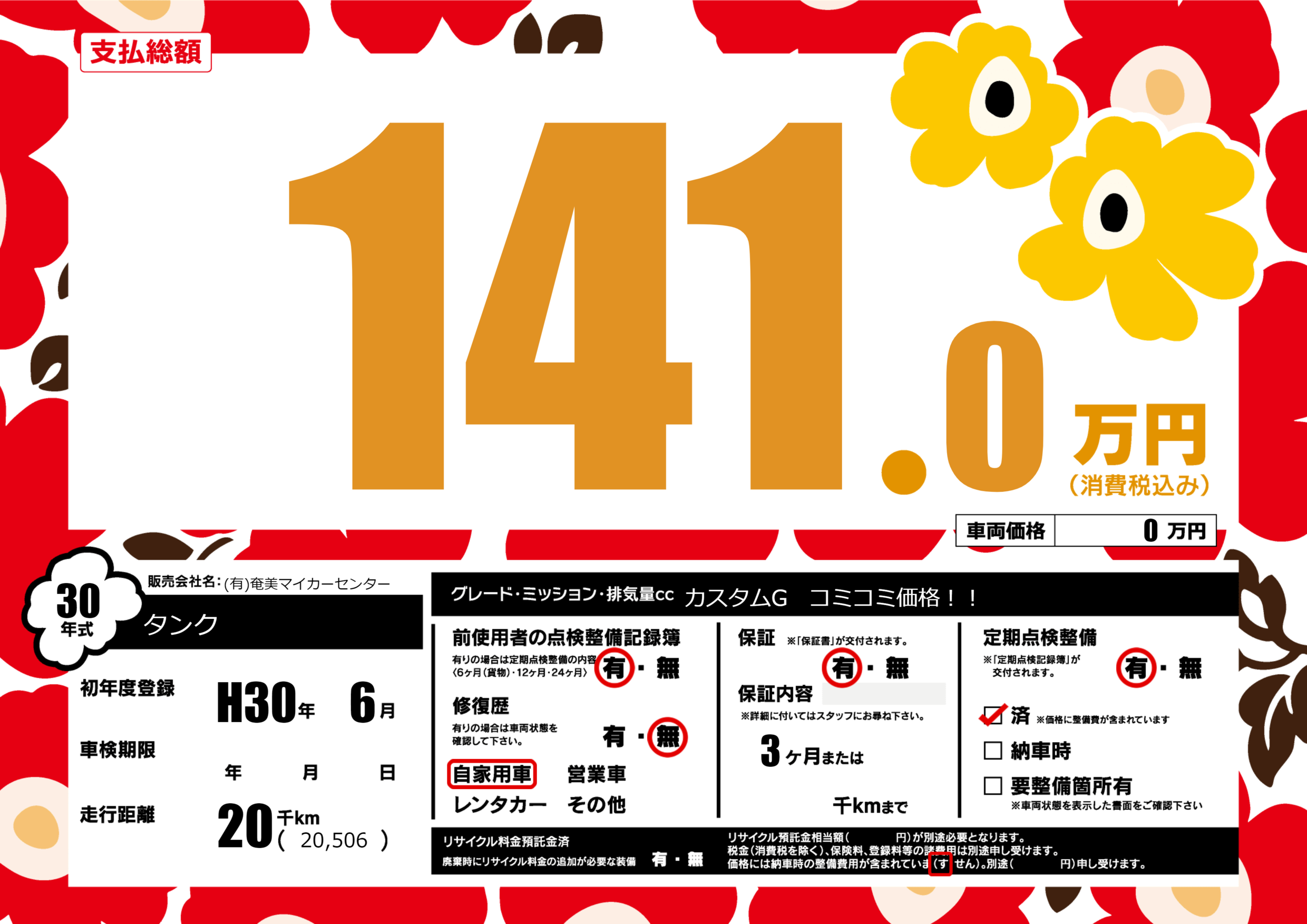 | 定期点検整備 | 定期点検整備あり 定期点検整備済み | ||