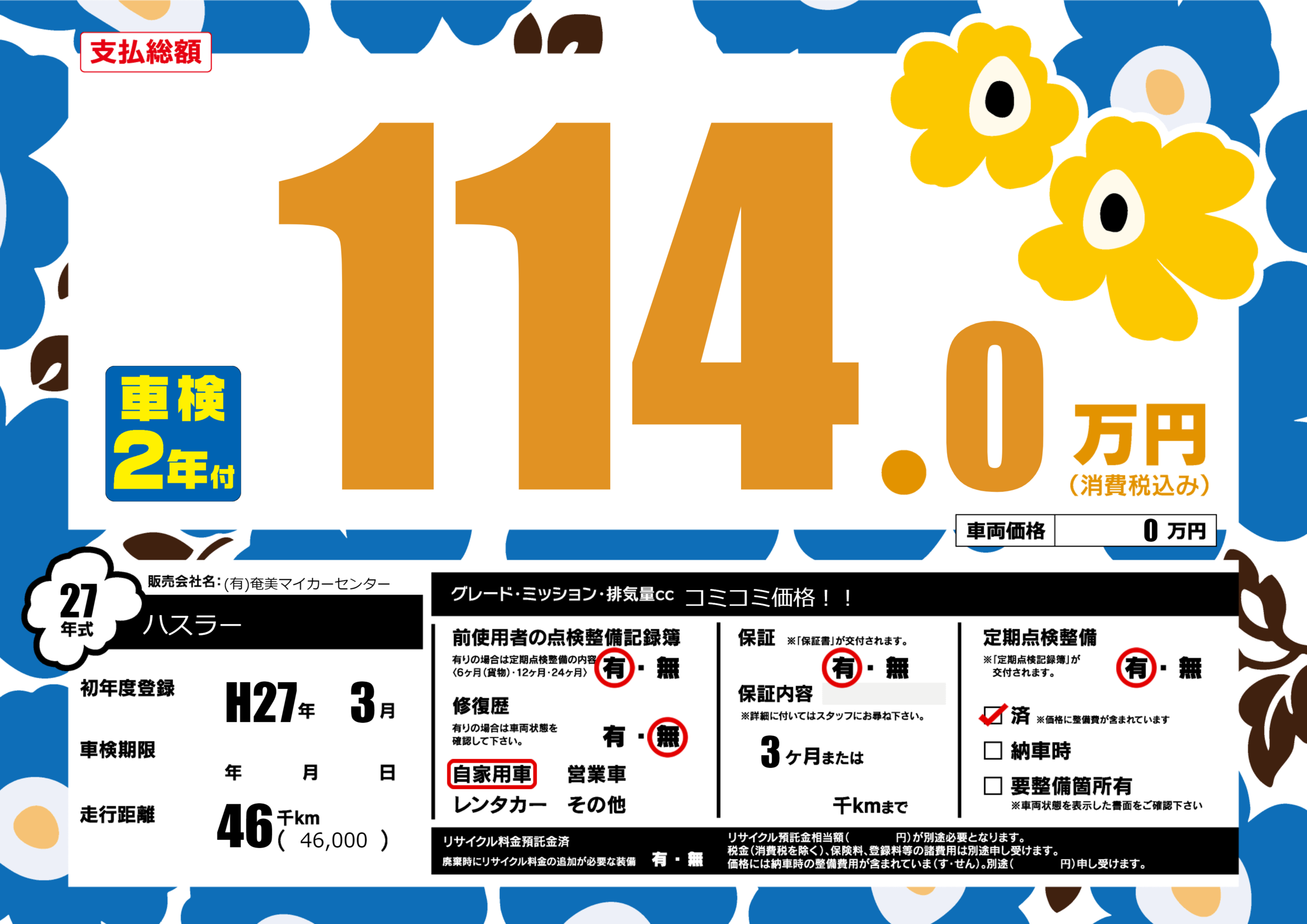 | 定期点検整備 | 定期点検整備あり 定期点検整備済み | ||