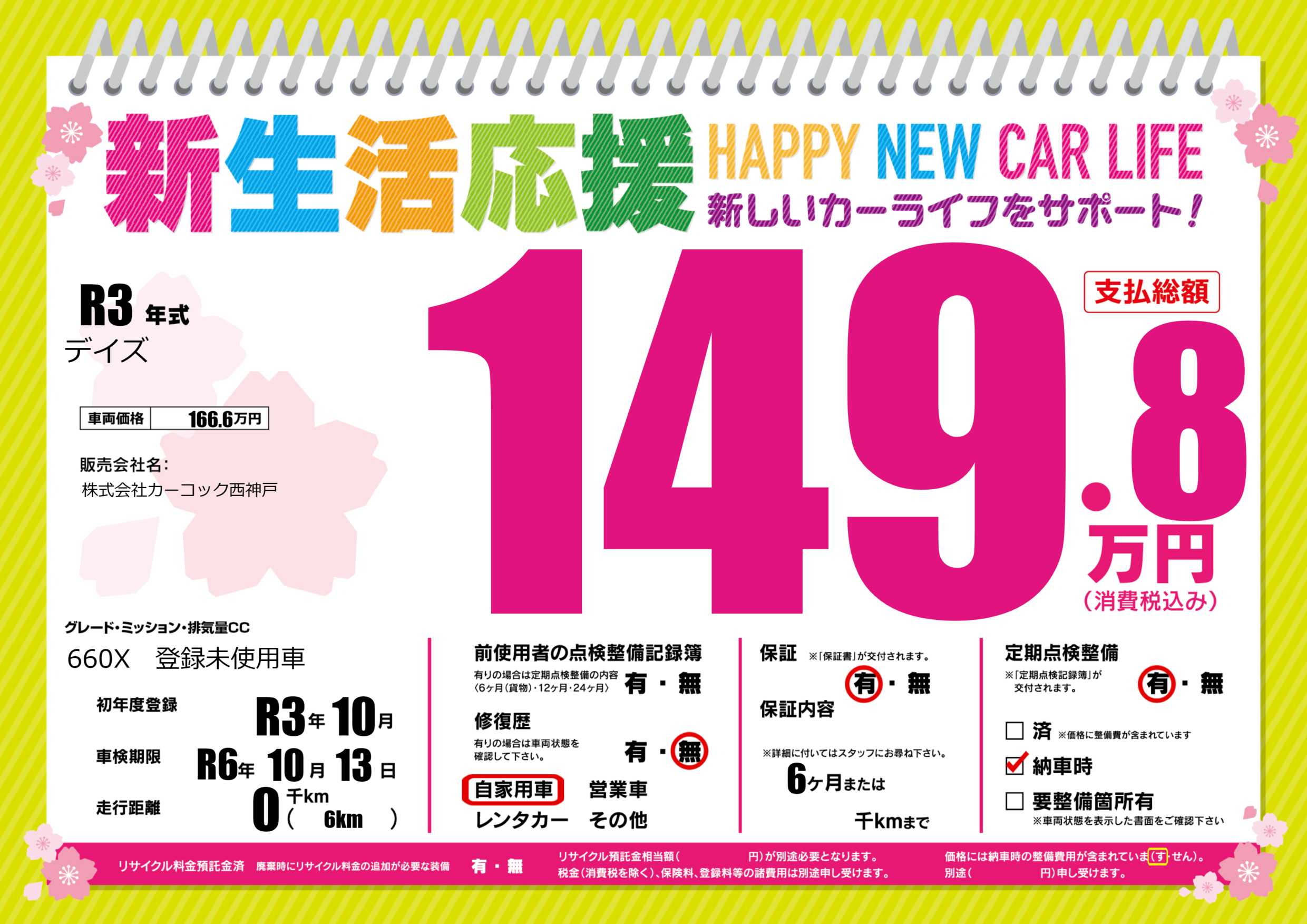 | 定期点検整備 | 定期点検整備あり 納車時あり | ||