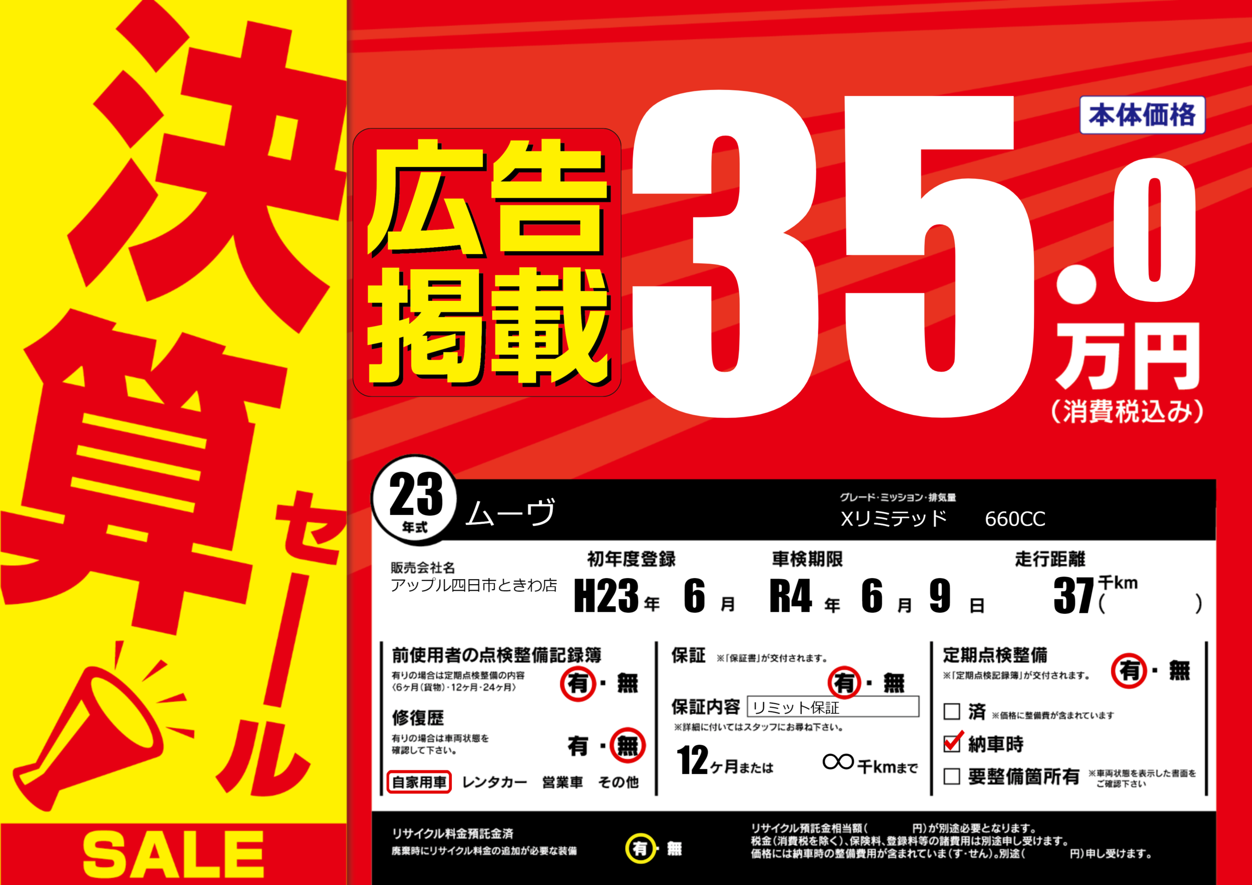 なし | 車検制限 | R4年6月9月 |