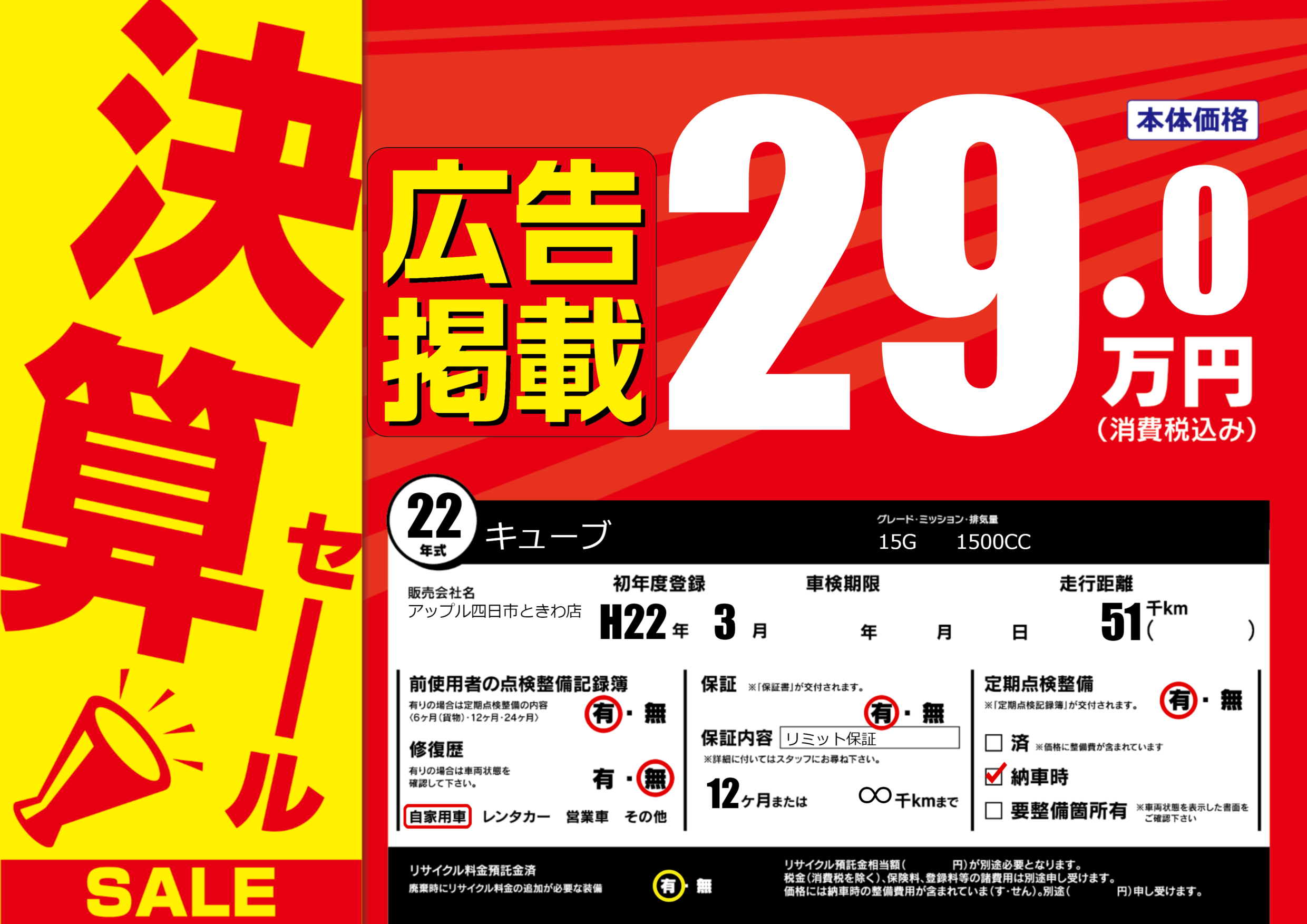 | 車名 | キューブ | グレード ミッション 排気量 |