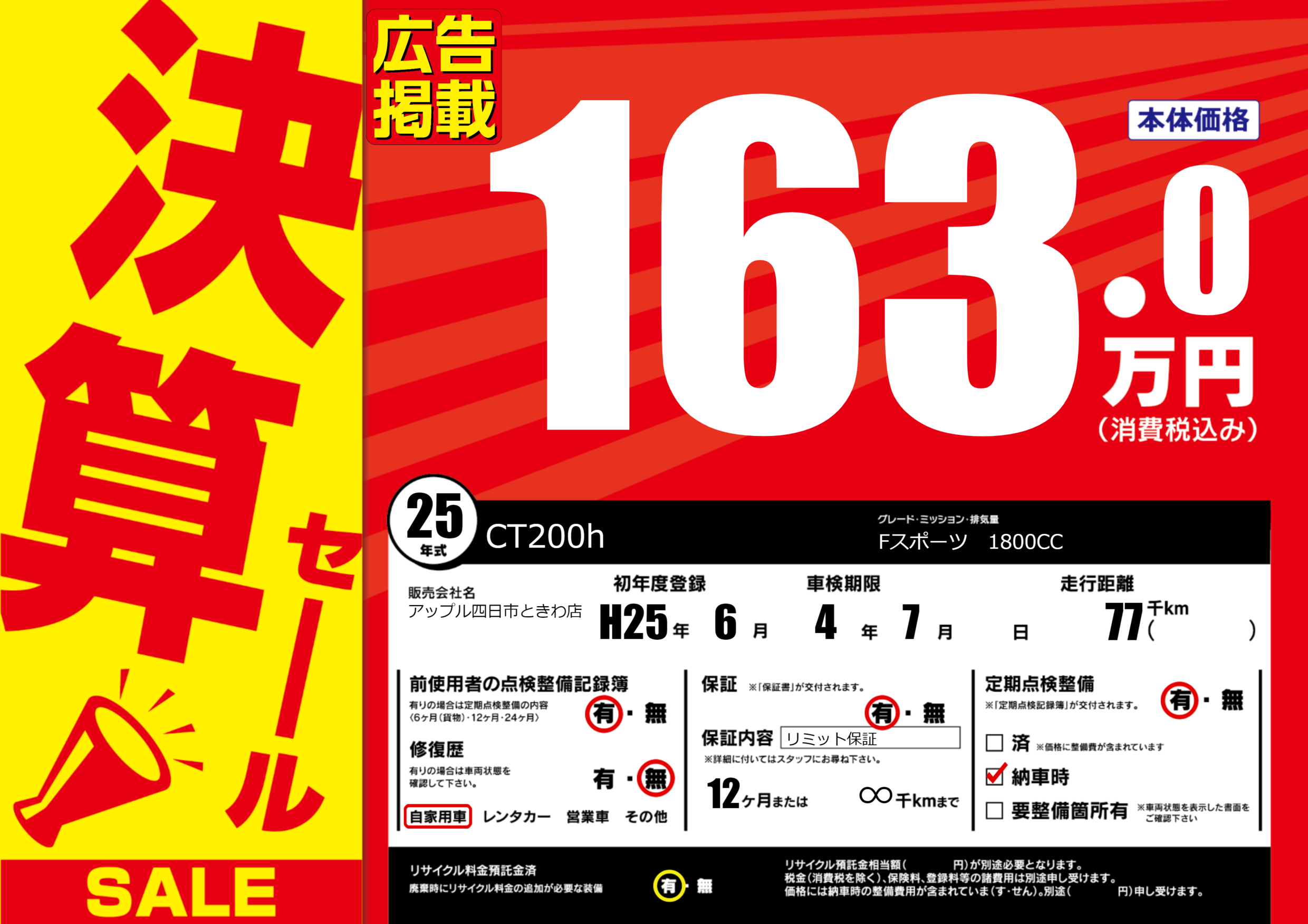 | 車名 | CT200h | グレード ミッション 排気量 |