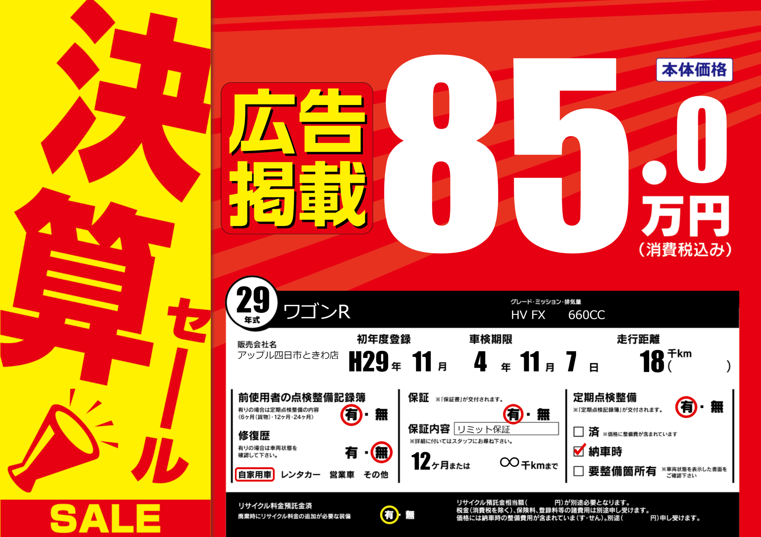 | 定期点検整備 | 定期点検整備あり 納車時あり | ||