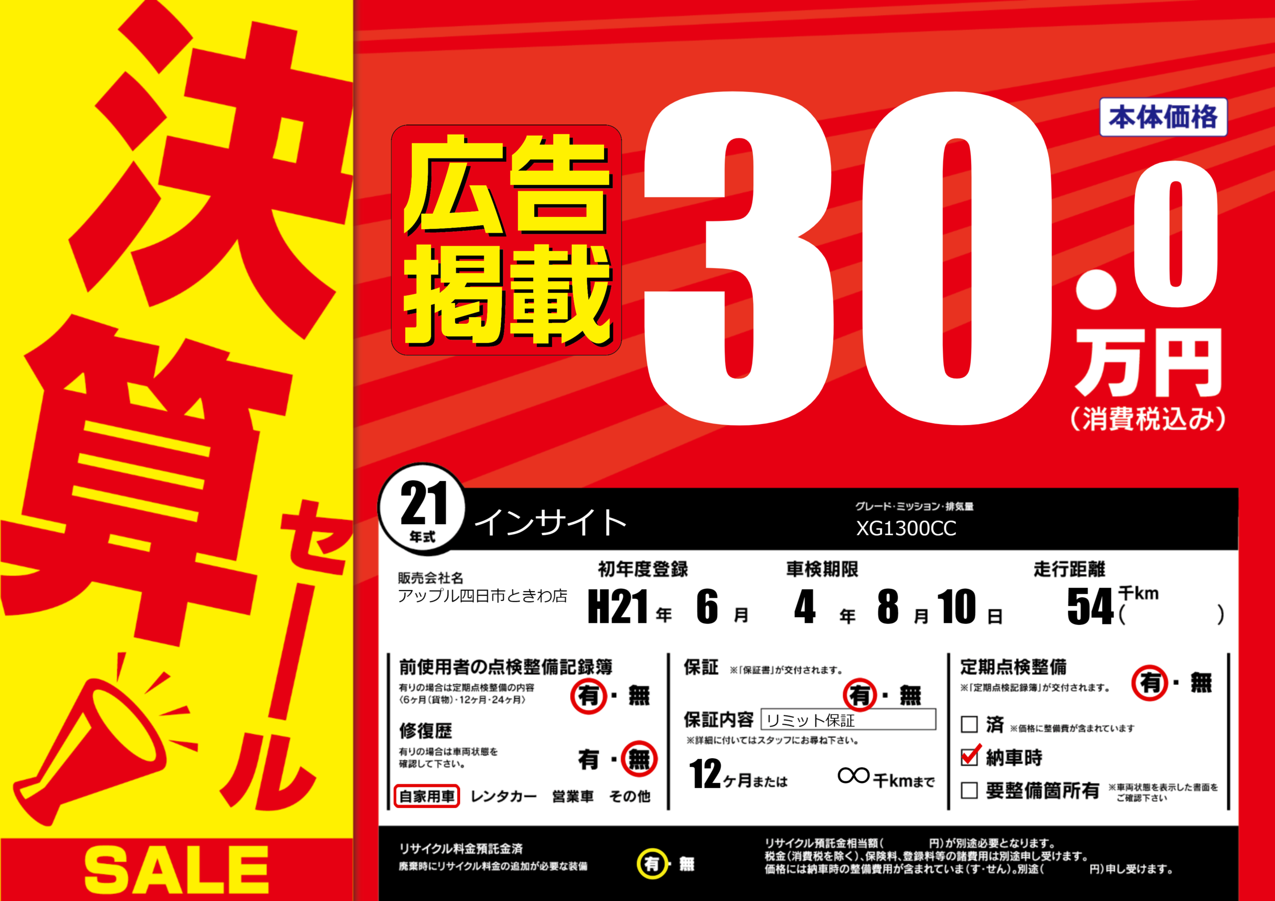 | 車名 | インサイト | グレード ミッション 排気量 |