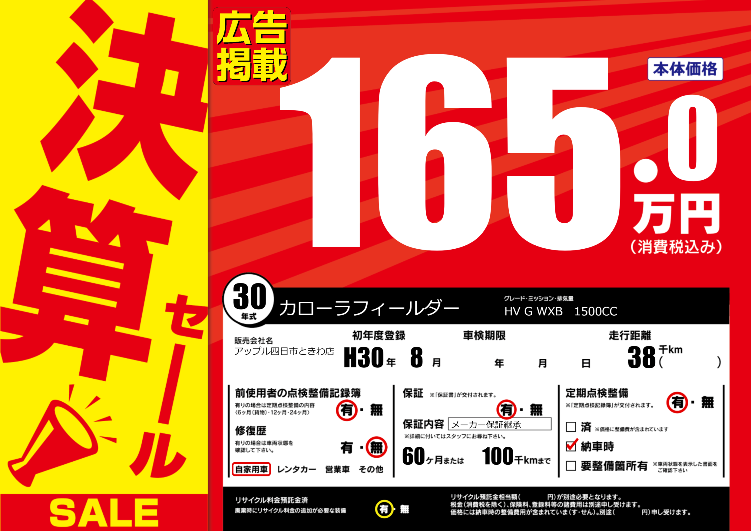 | 走行キロ | 3.8万km | 初年度登録 | H30年8月 |
